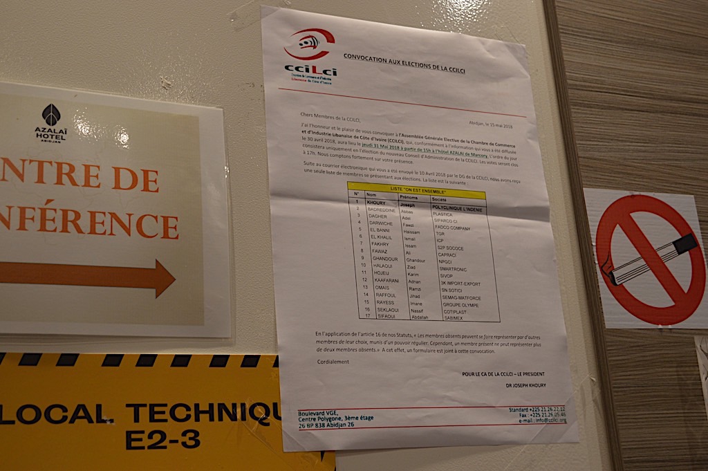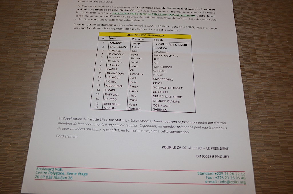 في خطوة لاقت ارتياحاً لدى أركان الجالية اللبنانية وفعالياتها الاقتصادية في الكوت ديفوار، جدّدت غرفة التجارة والصناعة اللبنانية انتخاب هيئتها الإدارية برئاسة الدكتور جوزف الخوري و16 عضواً. وفازت الهيئة بنسبة 92 بالمئة من المشاركين في الانتخابات الذين بلغوا 109 أشخاص. وصوّت ثمانية أعضاء بورقة بيضاء.