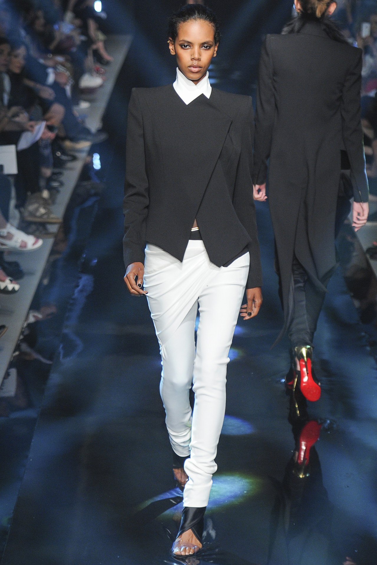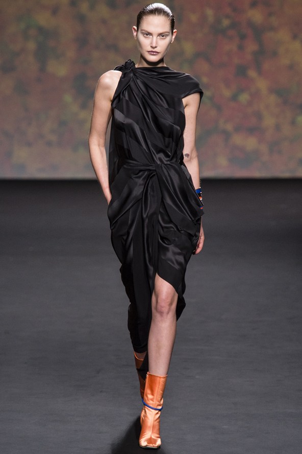 كانت عارضة الأزياء نعومي كامبيل نجمة العرض، حيث قامت بافتتاحه من خلال ارتدائها زي أسود أشبه بملابس السباحة،التصاميم الأنيقة غلبت عليها الأقمشة الجلدية والأقمشة اللامعة، فيما غلبت التايورات والفساتين متوسطة الطول على المجموعة.
