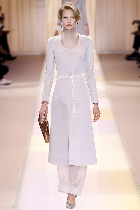 تصاميم Armani حملت عنوان الالوان الهادئة وأكثر ما اعتمد عليه هو الجاكيتات الطويلة والسراويل العريضة.