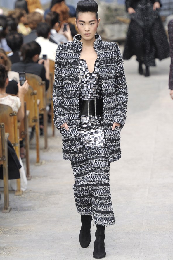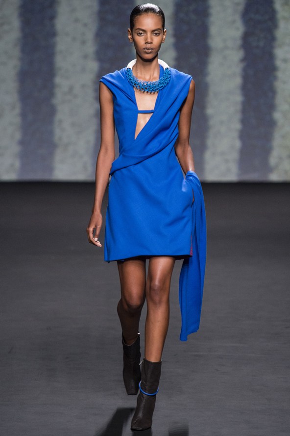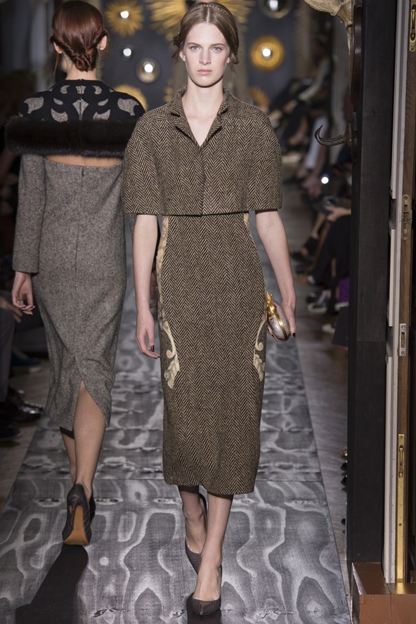 تميزت الأزياء بالرقي بالبقصات الحيويّة والعمليّة. قماش التويد الفاخر طغى على هذه التصاميم بألوان الرمادي اللامع والكحلي والزهري.. الأحزمة العريضة تعود الى لائحة الصيحات الرائجة في هذه المجموعة بعد أن غابت لعدة مواسم عن عالم الموضة.