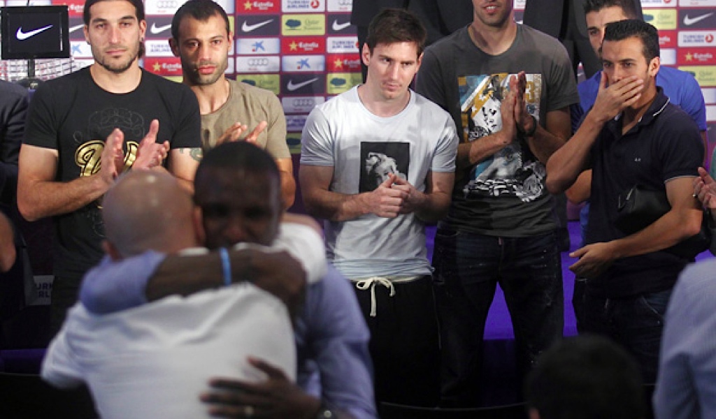 ودع المدافع الفرنسي المخضرم إيريك ابيدال فريقه برشلونة بطل الدوري الأسباني لكرة القدم بالدموع خلال مؤتمر صحفي مؤثر. وقال ابيدال “33 عاما” “أقول الوداع الآن ولكني سأعود قريبا”. وكان اللاعب الفرنسي يرغب في التجديد للنادي بعد أن اجتاز جراحة زرع كبد، لكن برشلونة لم يوافق معتبرا أن حالته الصحية لا تساعده على اللعب على أفضل وجه، وفي المقابل عرض عليه النادي منصبا تدريبيا.