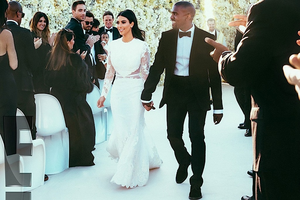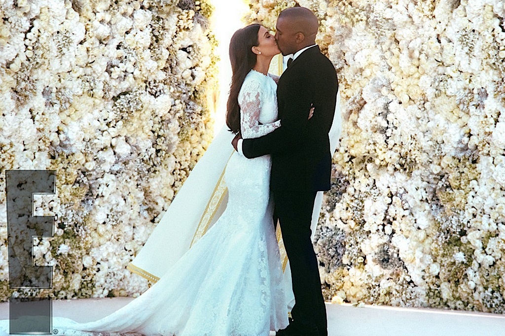 نشر موقع !E -الذي ينتج ويبث برنامج الواقع الخاص بعائلة كارداشيان- الصور الأولى لزفاف كيم كارداشيان وكاني ويست الذي أقيم مؤخرا في فورت دي بلفيدير في فلورنسا بإيطاليا. كما نشرت صحيفة دايلي مايل البريطانية بعض الصور خلال قيام مزين كيم يوضع مكياجها لحفل زفافها.