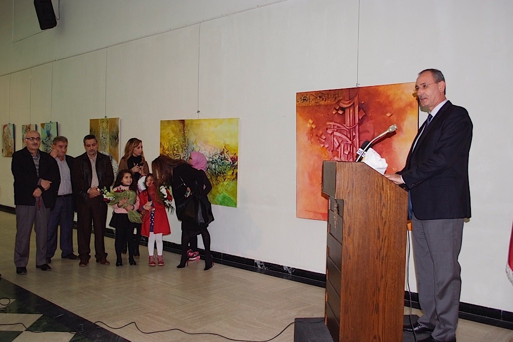 وختم:”الشكر الكبير للحركة الثقافية في لبنان ولرئيسها الأديب والشاعر بلال شرارة على اتاحته لي الفرصة للقائكم ورعاية هذا الانتاج الرائع لهذا المعرض التشكيلي، متمنيا أن تتكثف هذه اللقاءات في زمن نحن بأمس الحاجة الى تثقيف الشعوب لتتمكن من احترام القوانين والنصوص، وأن تكون سنة 2016 سنة خير ومحبة واستقرار وسلام، سنة يتفوق وينتصر فيها الفن على الفتن، وفن الرسم والعقل على فن الاجرام والقتل وفن سعادة الانسان على ترويع الانسان، فن قيامة لبنان ووحدته وعزته”.