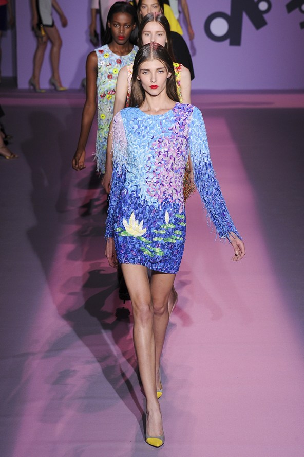 و لاغرفيلد  الحضور بالعشرات من الحلل والأثواب ذات الألوان الزاهية للمصمم الذي يتسم بالحيوية.وفي النهاية نظمت عارضات منهن البرازيلية جيزيل بوندشين ما يشبه مظاهرة بالشارع فيما صدحت في الخلفية أغنية الأميركية شاكا خان “أنا كل امرأة”.