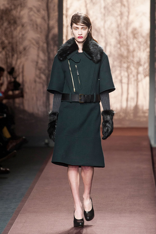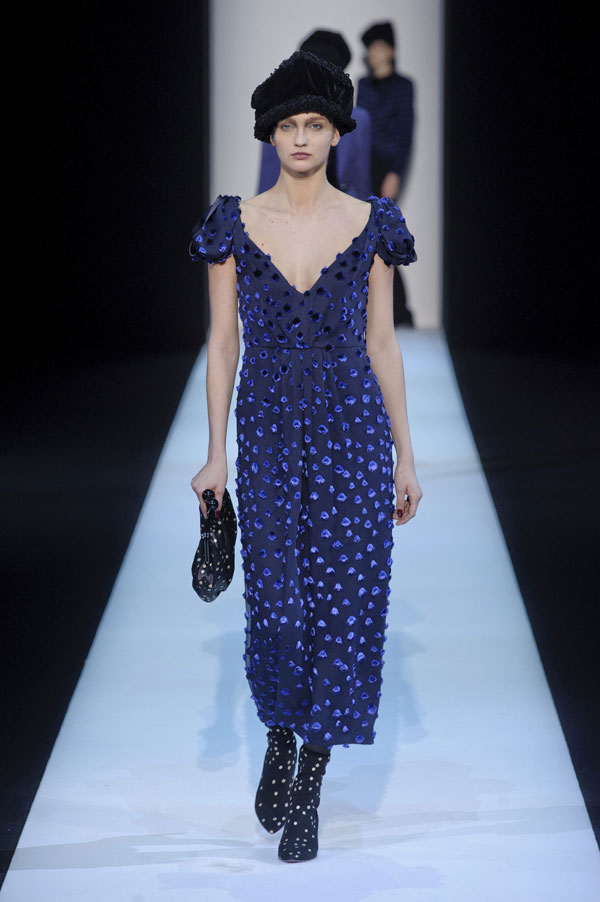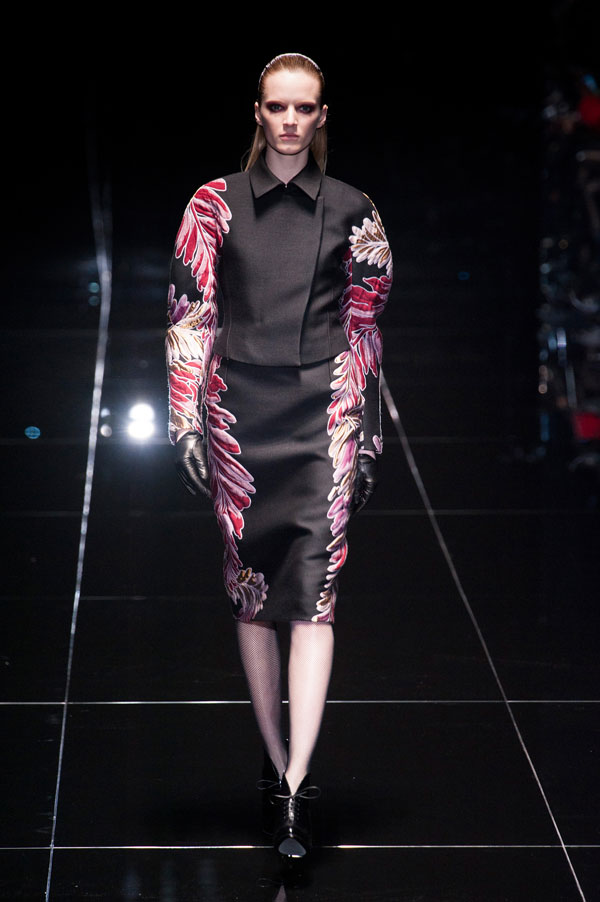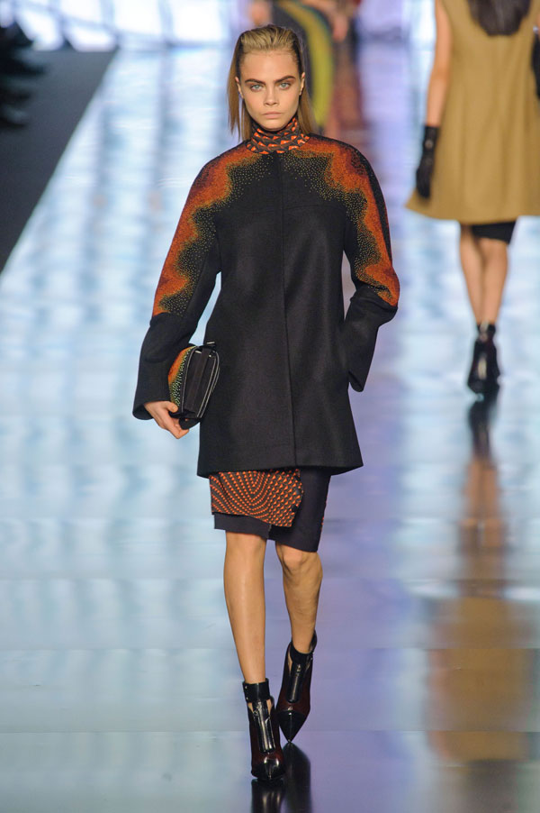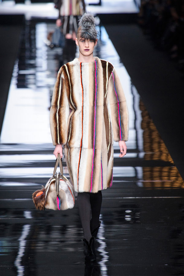 الفراء والجلد يعودان بقوة الشتاء القادم، وجاءت معاطف الفراء مستديرة عند الكتفين لتتهدل بعد ذلك على طول المعطف، فيما خالف كافللي المعروف بطبعات الحيوانات التكهنات وخرجت أزياؤه بطبعات لوروود ونباتات مستوحاة من لوحات الفنان كارافاجو. وتوجت الأزياء بمجموعة جريئة من الإكسسورات منها قلادات على شكل حشرات وثعابين وورود وأقراط كبيرة.