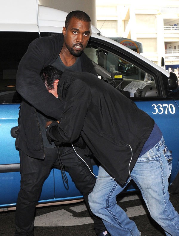 ويظهر شريط مصور عرضه موقع TMZ لاخبار المشاهير وست الفائز بجائزة غرامي وهو ينظر بغضب للمصورين اثناء مغادرته المطار. وواجه وست احد الصحفيين وقام على مايبدو بدفعه. وقال ماتيلغان ان وست (36 عاما) حاول انتزاع معدات من المصور.