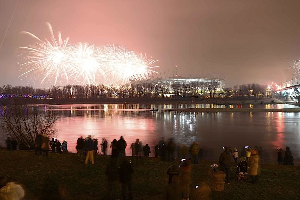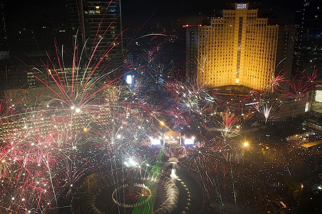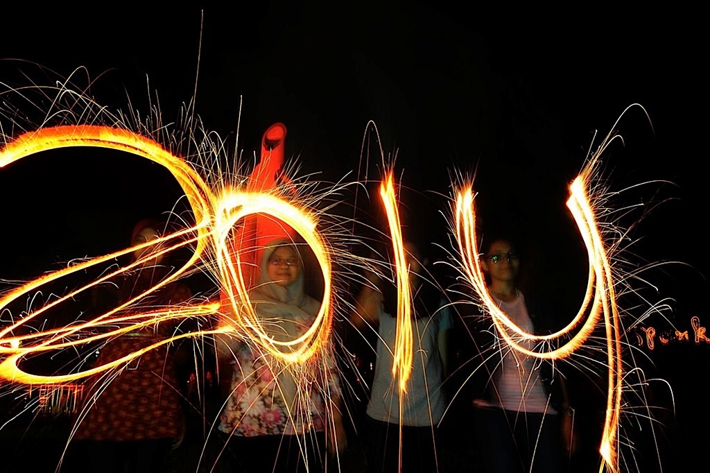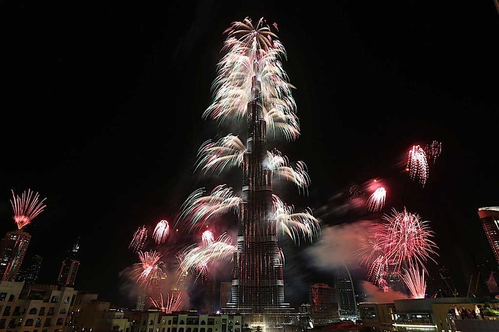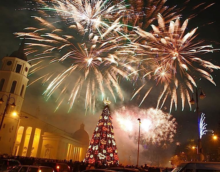 استقبل المحتفلون من سيدني الى دبي عام 2014 بعروض باذخة للالعاب النارية واحتفلت لندن برش سحب من رذاذ بنكهة الفواكه قبيل الالعاب النارية واحتفالات هائلة في الهواء الطلق في شياغو وسان فرانسيسكو.