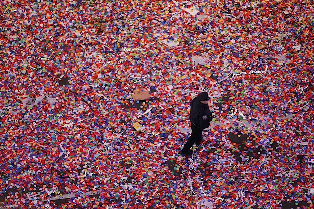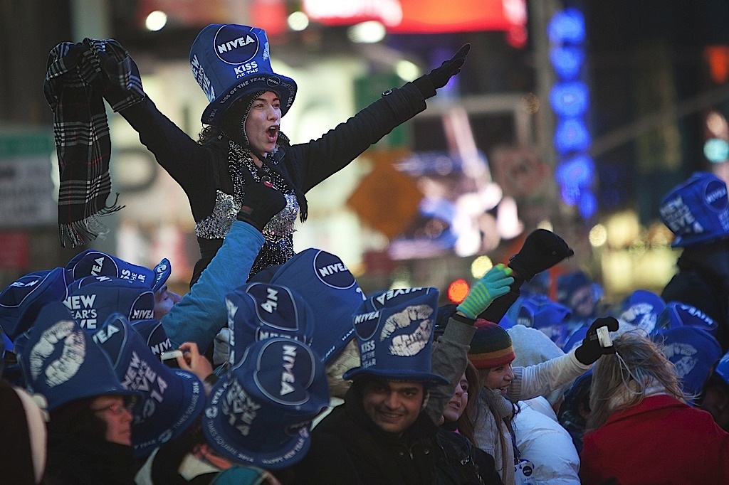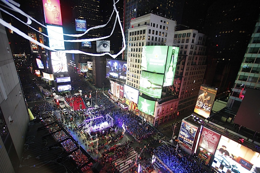 وفي نيويورك تجمع زهاء مليون شخص في ساحة تايمز سكوير لحضور حفل عشية بداية العام الجديد يقام سنويا وشارك في حفل هذا العام ميلي سايروس وميليسا إثريدج وفنانا الهيب هوب ماكلمور وريان لويس.
