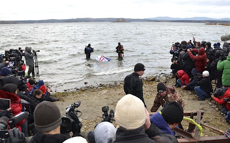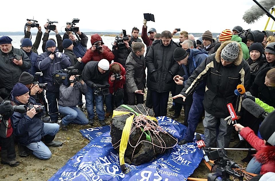 تمكن الغواصون الروس من انتشال كتلة تبلغ 570 كيلوغراما يعتقد أنها جزء من النيزك الذي سقط في منطقة شيليابنينسك مطلع العام الجاري. وغرقت بقايا النيزك في بحيرة شيباركول بعدما تركت فجوه عميقة في الجليد المتراكم فوقها بلغ اتساعها ستة أمتار.