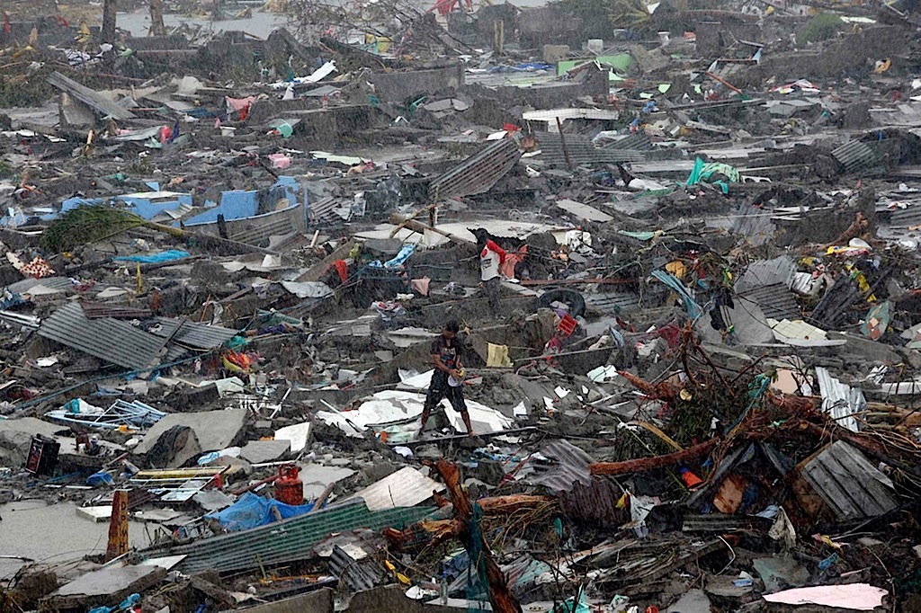 وصف ريتشارد غوردون رئيس الصليب الاحمر الفلبيني الدمار الذي تسبب فيه الإعصار هايان بأنه “دمار واسع النطاق”. ويقدر المسؤولون الفلبينيون عدد القتلى الذين سقطوا ضحية الكارثة بعشرة الآف شخص في مدينة تاكلوبان وأماكن أخرى، فضلا عن نزوح مئات الآف، كما أسفرت الخسائر التي لحقت بالطرق والمطارات عن عرقلة جهود الإنقاذ.