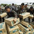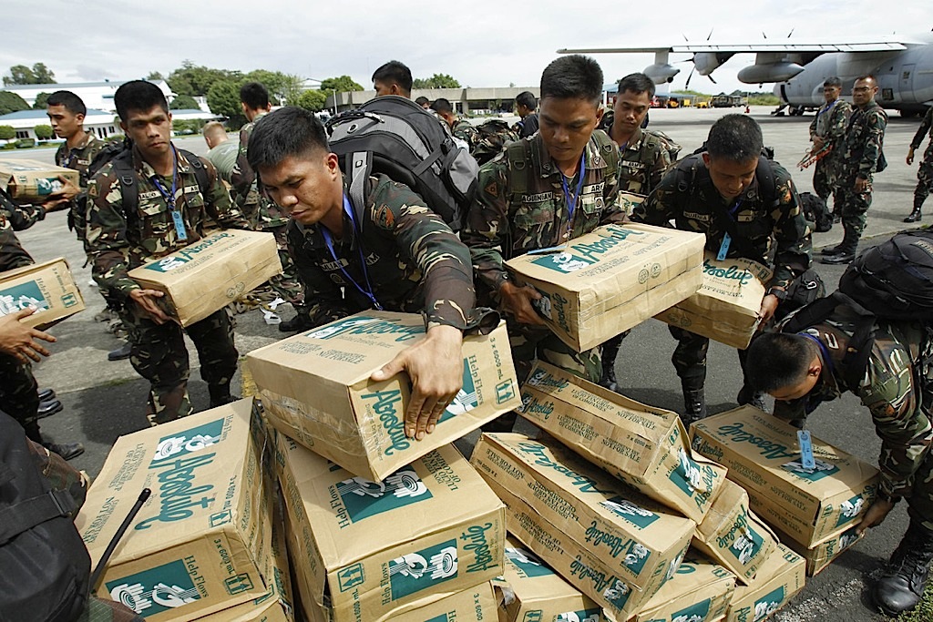 وقال مسؤولون إن بعض القوات الإضافية من الجيش الأميركي وصلت إلى الفلبين لتعزيز جهود الإغاثة فيما نقلت طائرات شحن عسكرية أمريكية إمدادات من الغذاء والدواء والماء إلى الضحايا. وأعلن الرئيس الفلبيني بنينو اكينو حالة الكارثة الوطنية ونشر مئات الجنود في تاكلوبان لمواجهة أعمال النهب. وبدت حكومة تاكلوبان في حالة ارتباك مع انشغال مسؤولي المدينة والعاملين بالمستشفيات بإنقاذ أسرهم والحصول على الطعام.