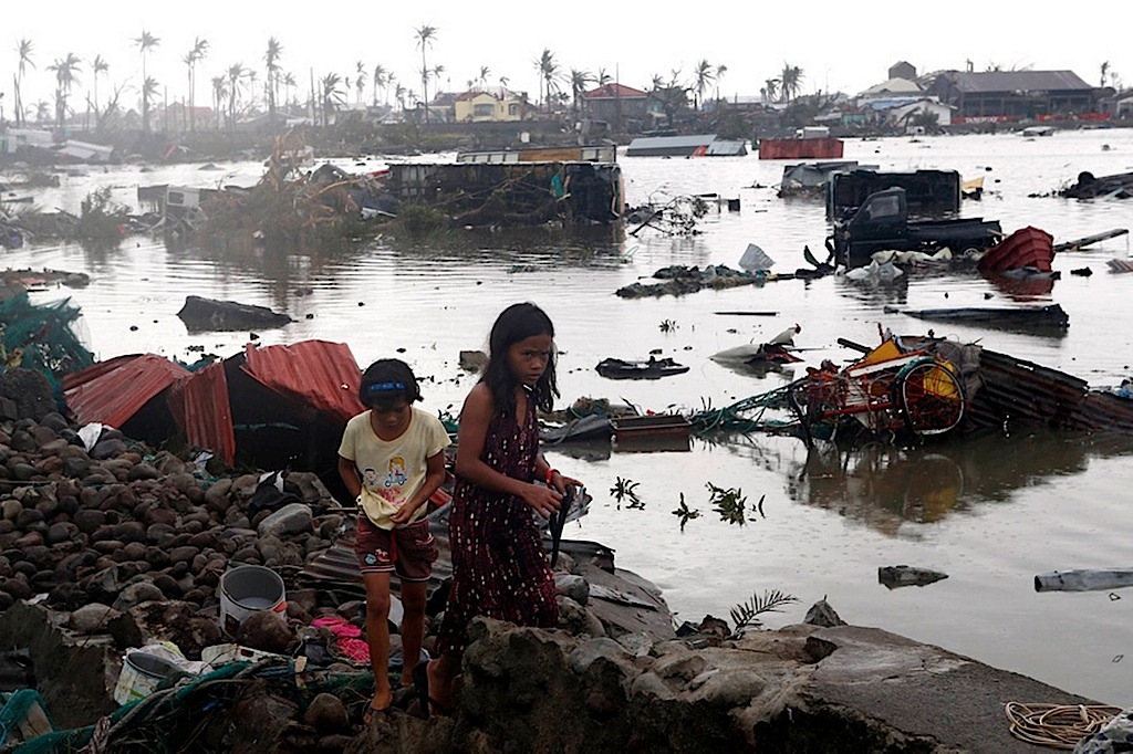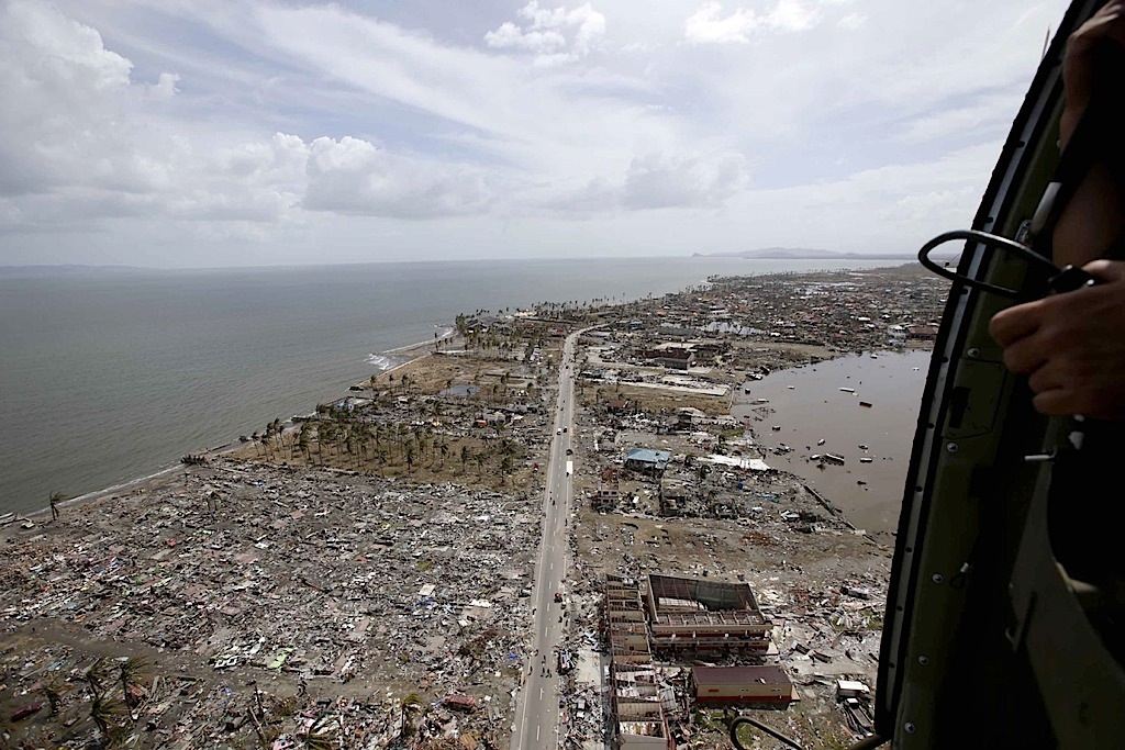 تشير التقديرات إلى أن هايان – أحد أقوى الأعاصير المسجلة على الإطلاق – دمر ما بين 70 و80 بالمئة تقريبا من المباني. ووتعهدت 21 دولة بإرسال مساعدات إغاثة. وتعهد مؤتمر الأساقفة في إيطاليا بتقديم مساعدات إغاثة قيمتها ثلاثة ملايين يورو بالإضافة إلى 150 ألف دولار أرسلها البابا فرنسيس و100 ألف يورو من مؤسسة كاريتاس الخيرية الكاثوليكية. ومن المرجح أن ترتفع الحصيلة الرسمية للقتلى سريعا فور وصول عمال الإنقاذ إلى المناطق الساحلية النائية مثل بلدة جويوان في شرق إقليم سامار التي يقطنها 40 ألف نسمة والتي دمر معظمها.
