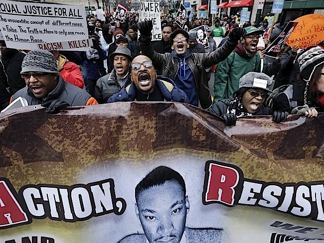 عمت الاحتفالات والتظاهرات انحاء الولايات المتحدة الاميركية في ذكرى تكريم ذكرى الزعيم الراحل المدافع عن الحقوق المدنية مارتن لوثر كينغ احتجاجا على المعاملة القاسية التي يتلقاها اصحاب البشرة السمراء من رجال الأمن. وربط المحتفلون بيوم مارتن لوثر كينغ- وهو يوم عطلة اتحادي احتفل فيه للمرة الأولى عام 1986- هذه المناسبة بالرسالة التي عبروا عنها في الأشهر الأخيرة خلال التظاهرات ضد وحشية الشرطة.