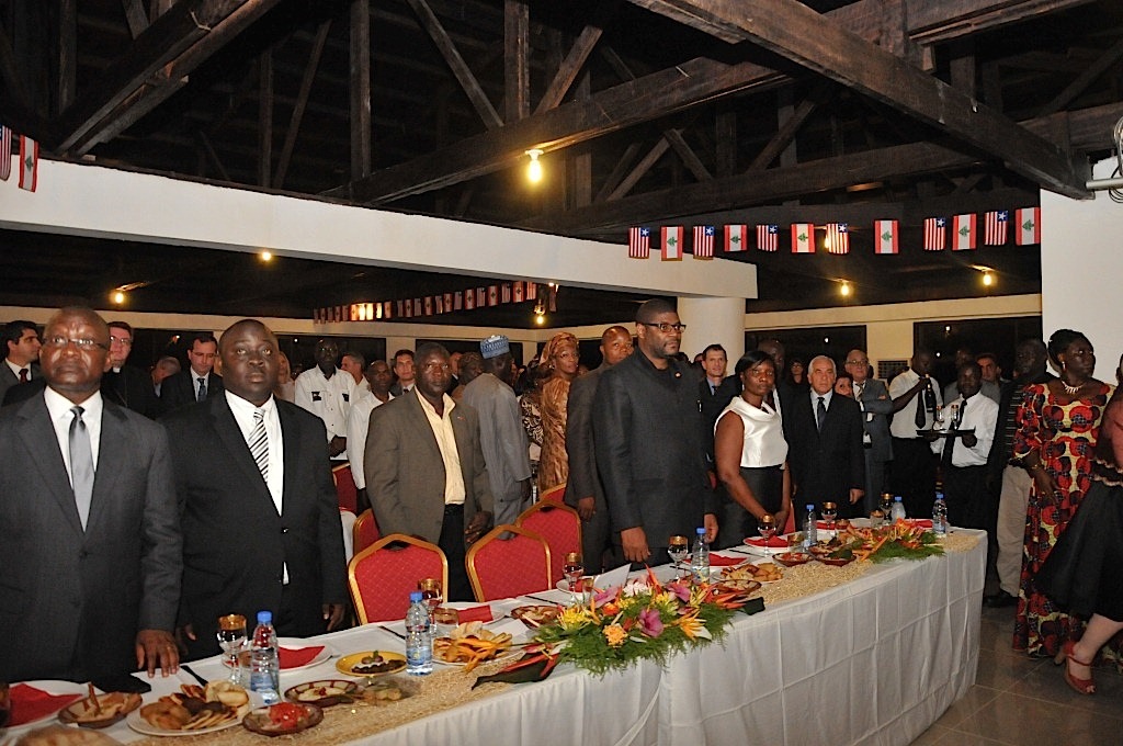 وحضر الاحتفال، عدد كبير من السفراء المعتمدين في ليبيريا. ورحب القائم بأعمال السفارة وعيد وأركان الجالية بالضيوف ،وتحدث ممثل لبنان بشير سركيس عن تاريخ لبنان العريق وحضارته الممتدة جغرافيا الى أنحاء العالم كافة، مشيرا الى دور لبنان الهام حين كانت بيروت أم الشرائع على مدى 300 عاما وكيف كانت ملجأ للمضطهدين.