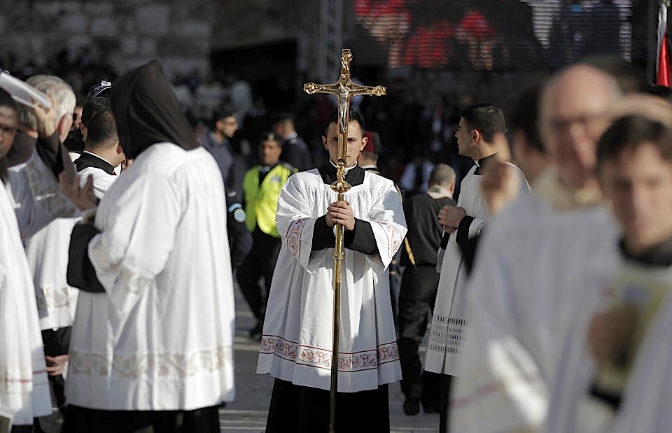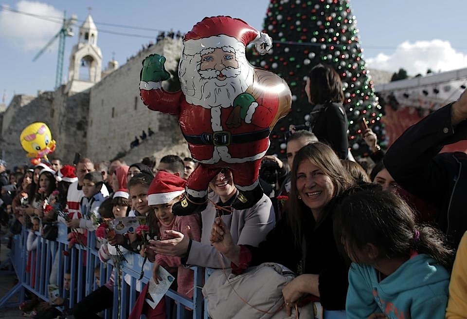 وفي بيت لحم مهد يسوع، ترأس بطريرك اللاتين في فلسطين والأردن وسائر الأراضي المقدسة، فؤاد طوال، رتبة القداس الاحتفالي في كنيسة القديسة كاترين الكاثوليكية المجاورة لكنيسة المهد.