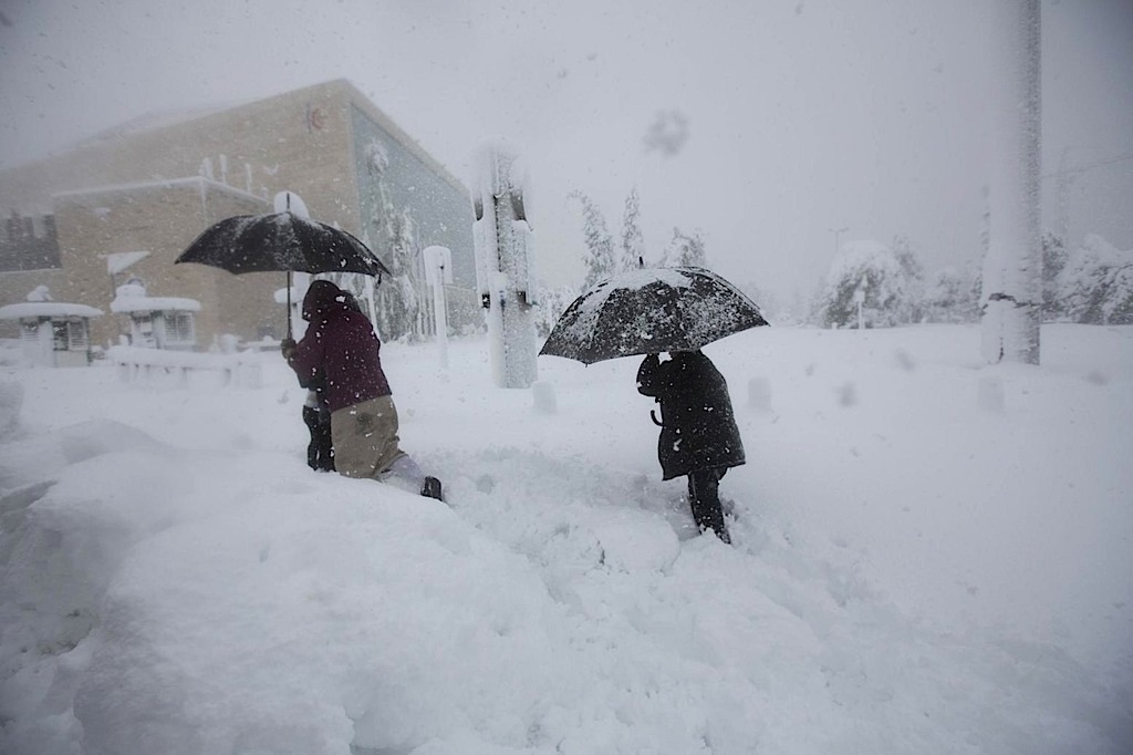وغطت العاصفة منطقة القدس وأجزاء من الضفة الغربية المحتلة بالثلوج فأصابت الحياة وحركة المرور بالشلل. وقال نير بركات رئيس بلدية القدس “خلال سنوات عمري الأربع والخمسين لا أتذكر مشهدا كهذا لا أستطيع أن أتذكر شيئا بهذا الكم.”