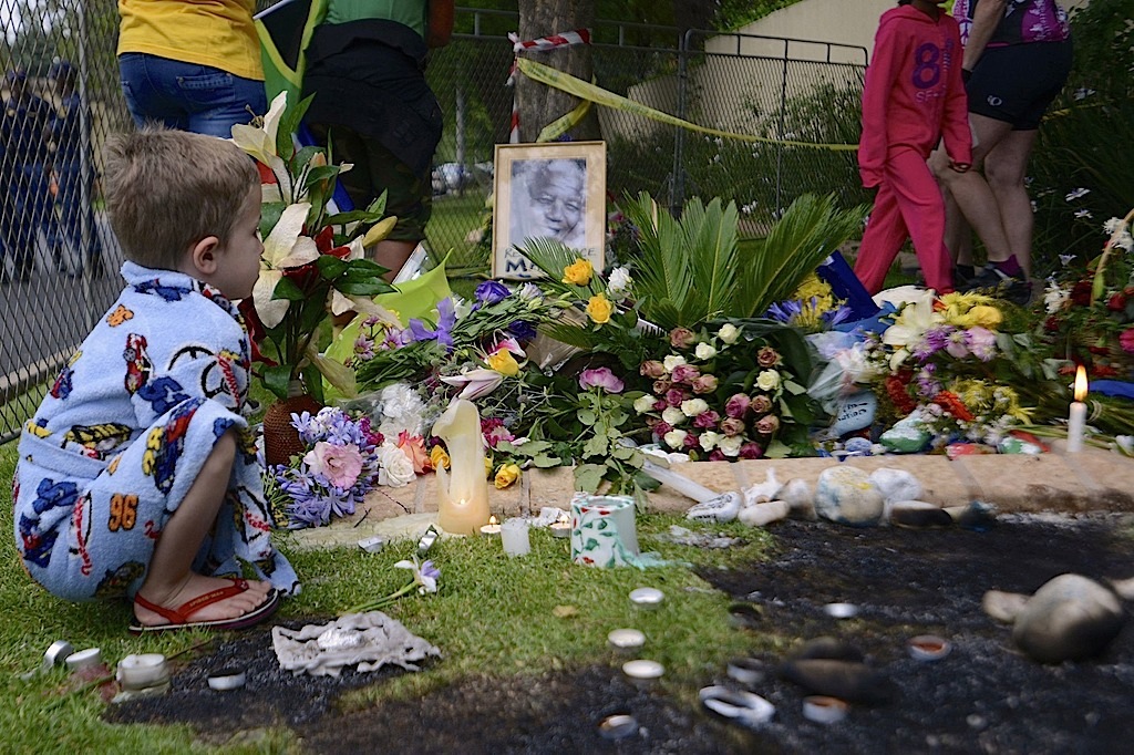 وانحنى البعض تبجيلا لدى المرور امام نعش مانديلا. ويوم الجمعة جلس حفيده المسمى على اسمه الى جوار النعش يستقبل الزوار بابتسامة.