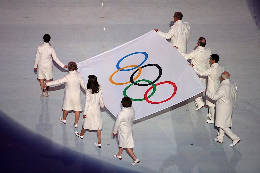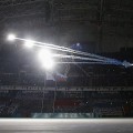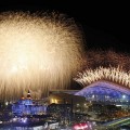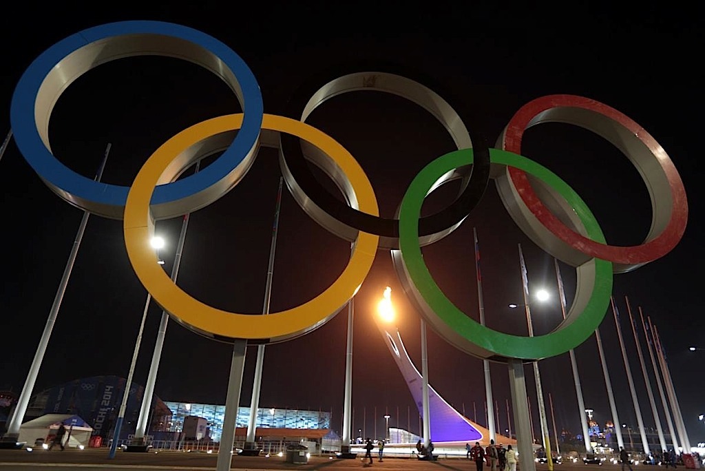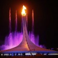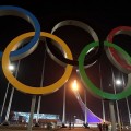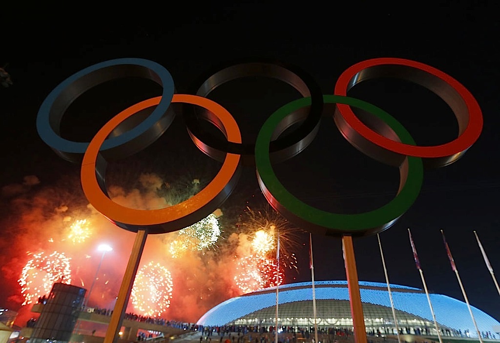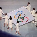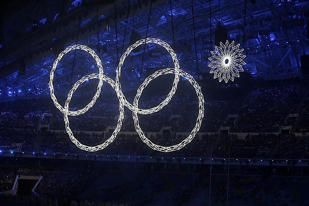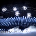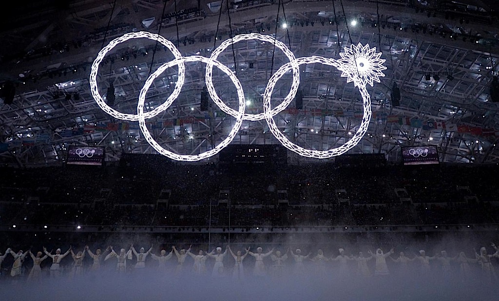 وأنزلت خمس حلقات عملاقة من سقف استاد فيشت على مشارف سوتشي وكان يفترض أن تفتح في دوائر ثم تتم إضاءتها لكن أربعا فقط من الحلقات أضيئت .