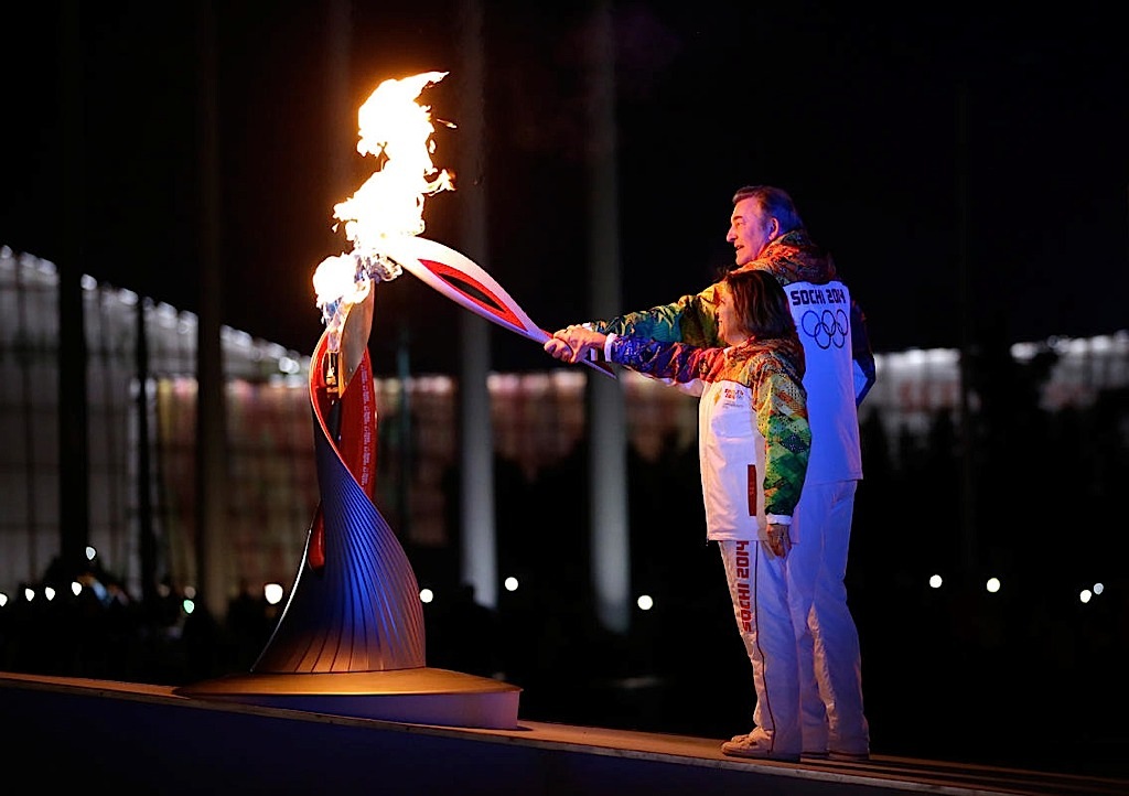 وقال الرئيس الروسي فلاديمير بوتين “أعلن افتتاح الألعاب الأولمبية الشتوية الثانية والعشرين في سوتشي”. وأشعل بطلا الألعاب الأولمبية فلاديسلاف تريتياك وإيرينا رودنينا النار الأولمبية بعد أن حملها إلى ملعب “فيشت” في سوتشي الرياضيون الروس المشهورون ألكسندر كاريلين وماريا شارابوفا ويلينا ايسينبايفا وألينا كابايفا.