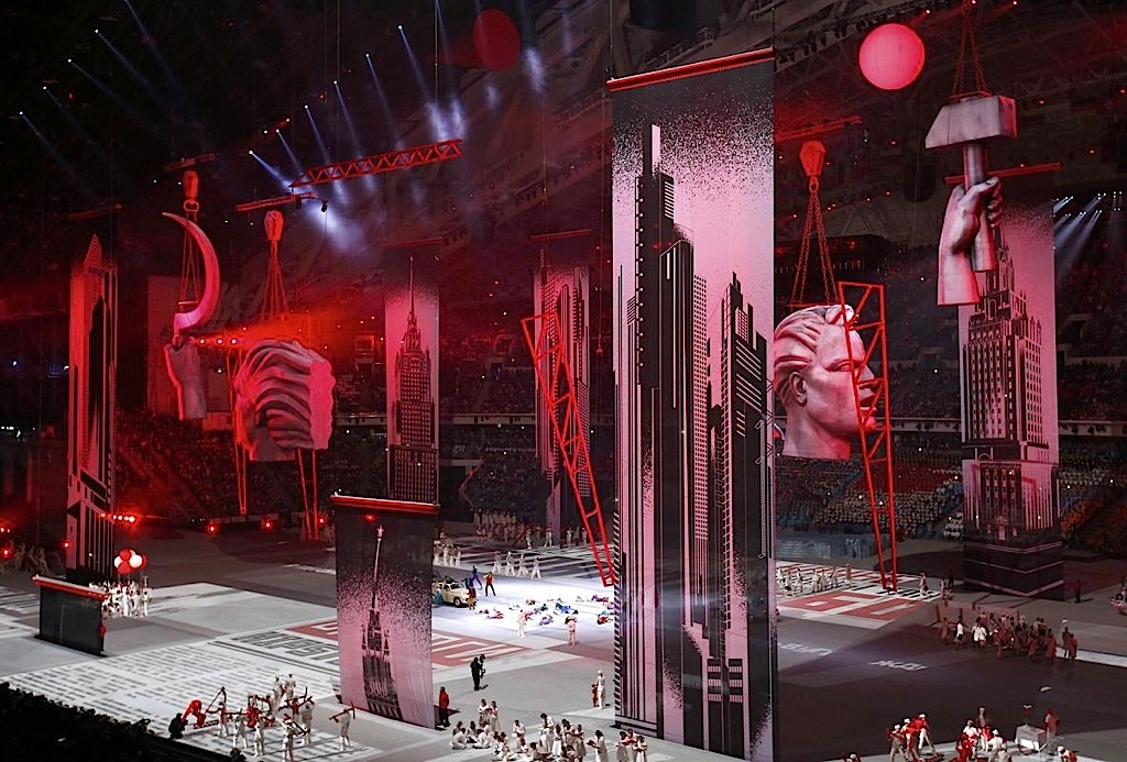 وتضمن تقديم لوحات تحكي تاريخ روسيا، عبر أحلام طفلة صغيرة، تُدعى “ليوبوف”، وتعني بالعربية “حُب”، تغوص بأحلامها في عمق التاريخ الروسي، ثم تنتقل إلى الحاضر فالمستقبل. وتم خلال الحفل تقديم أغنية للفرقة الروسية الشهيرة “تاتو”، بعنوان “لن يلحقوا بنا”، كإشارة على أن الفرق والرياضيين الروس المشاركين في الأولمبياد، يسعون إلى الانفراد بالمقدمة.