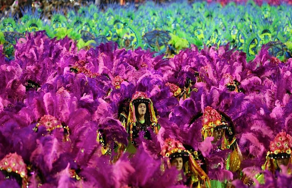 كما كل عام تضج شوارع ريو دي جانيرو بالالوان والموسيقى والرقص في مهرجان تتنافس فيه 12 مدرسة للسامبا في جادة سامبودروم التي تحتفل بأعوامها الثلاثين.