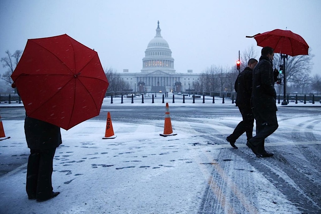 ودفعت العاصفة الحكومة الأميركية لإغلاق مكاتبها في العاصمة واشنطن مما أدى إلى بقاء مئات الآلاف من الموظفين الاتحاديين في منازلهم. وأرجأ الكونغرس جلسات تصويت كانت مقررة يوم الإثنين بسبب الطقس السيء.