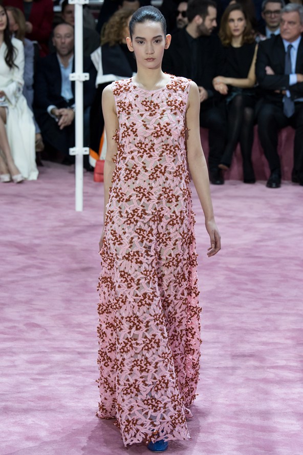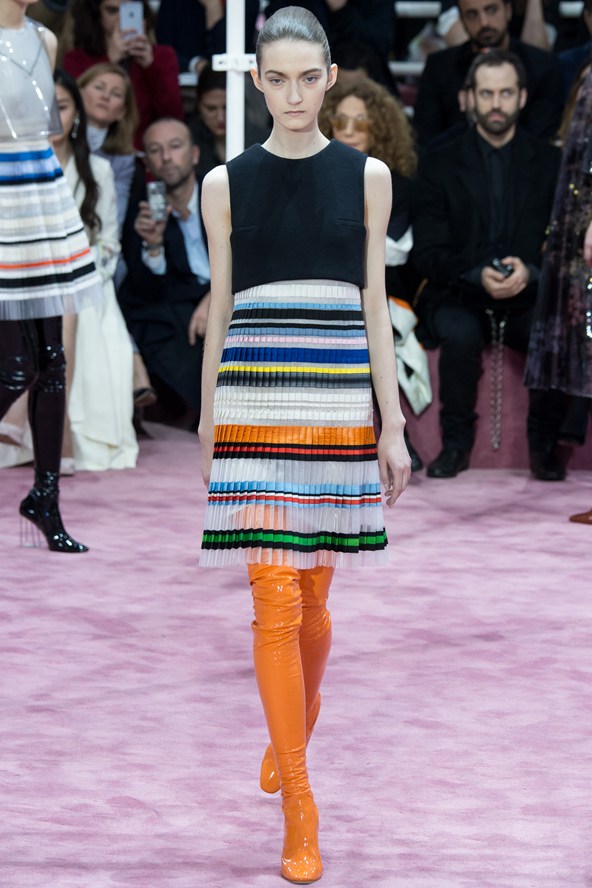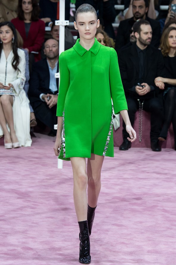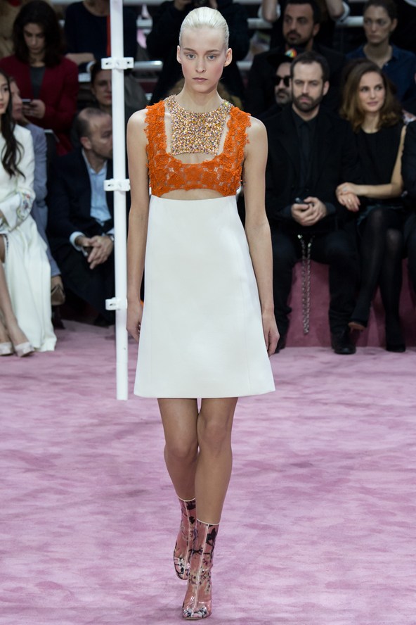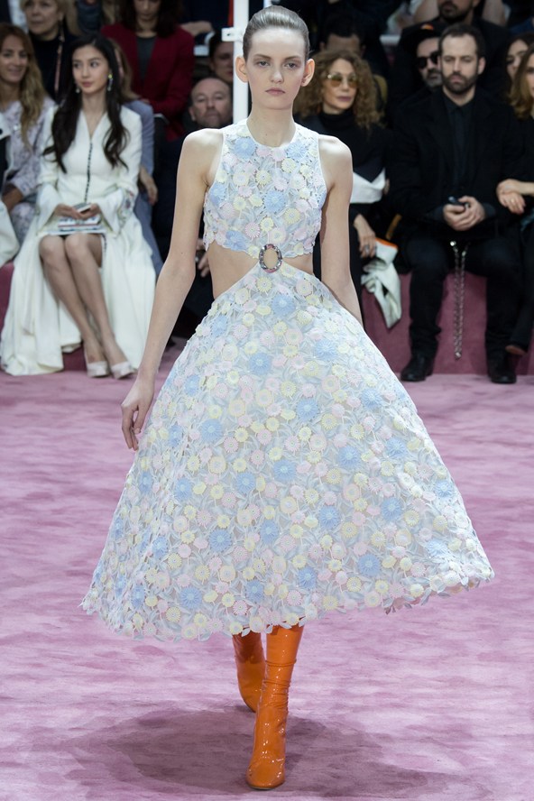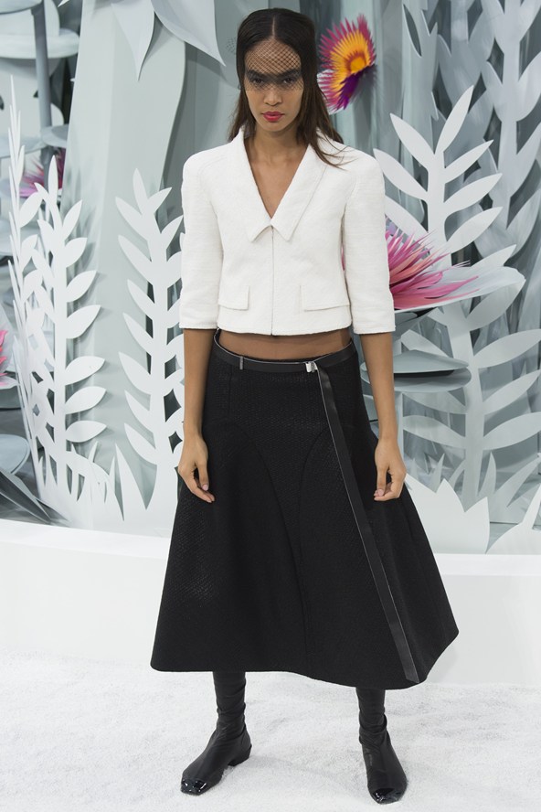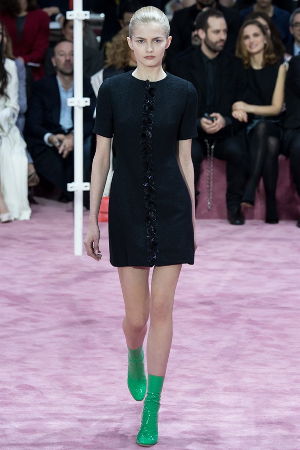 إمرأة ديور للموسم المقبل محظوظة إذ إن المصمم راف سيمونز خاطب زبونات من أعمار مختلفة، زبونات يسعين الى اقتناء ما يليق بهن في كل الاوقات من دون أن تقتصر التصاميم على المناسبات أو الاحتفالات الكبيرة، فالسجادة الحمراء ليست ملعب المرأة الانيقة الوحيد. وحافظ سيموز على خط يربط تصاميمه بالماضي المفعم بالرومانسية من خلال تفاصيل بسيطة من تنورة رومانسية ومنفوخة من الخمسينات، أو في فساتين مستقيمة.