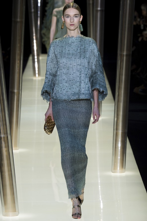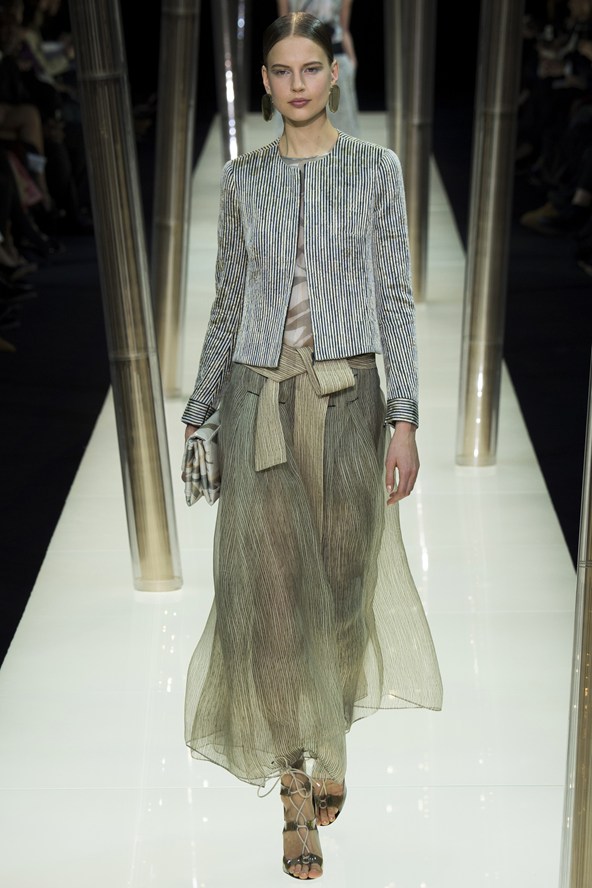 من جهة أخرى، قدّم جيورجيو أرماني في تشكيلته «بريفيه» مجموعة من الازياء التي يمكن وصفها بـ «السهل الممتنع» التي تتمتع بالخطوط السهلة والانسابية بلمسات راقية غنية بالتطريز المفعم بالحساسية والنحو صوب الطبيعة.
