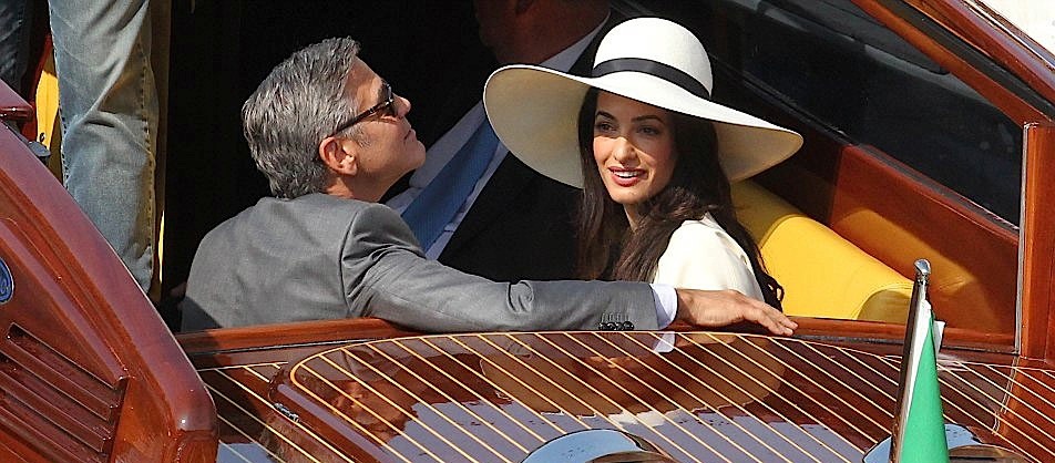 ولوح الاثنان الى الصحفيين الذين كانوا يلاحقونهما بقوارب الجندول كما لوحا للمهنئين الذين كانوا يقفون فوق الجسور على طول القناة الكبرى.ونزعت المراسم المختصرة عن كلوني الحائز على جائزة أوسكار مرتين لقب أشهر عازب في العالم.