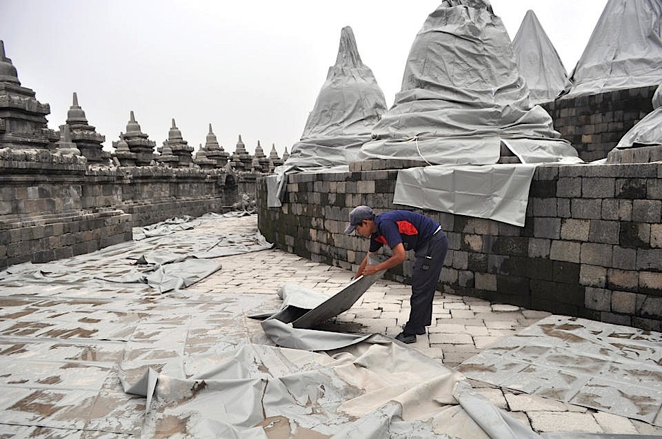 وشوهدت سحابة الرماد البركاني من على بعد تسعة كيلومترات إلى الغرب وأدت إلى إغلاق مطارات في سورابايا ويوجياكارتا وسولو.