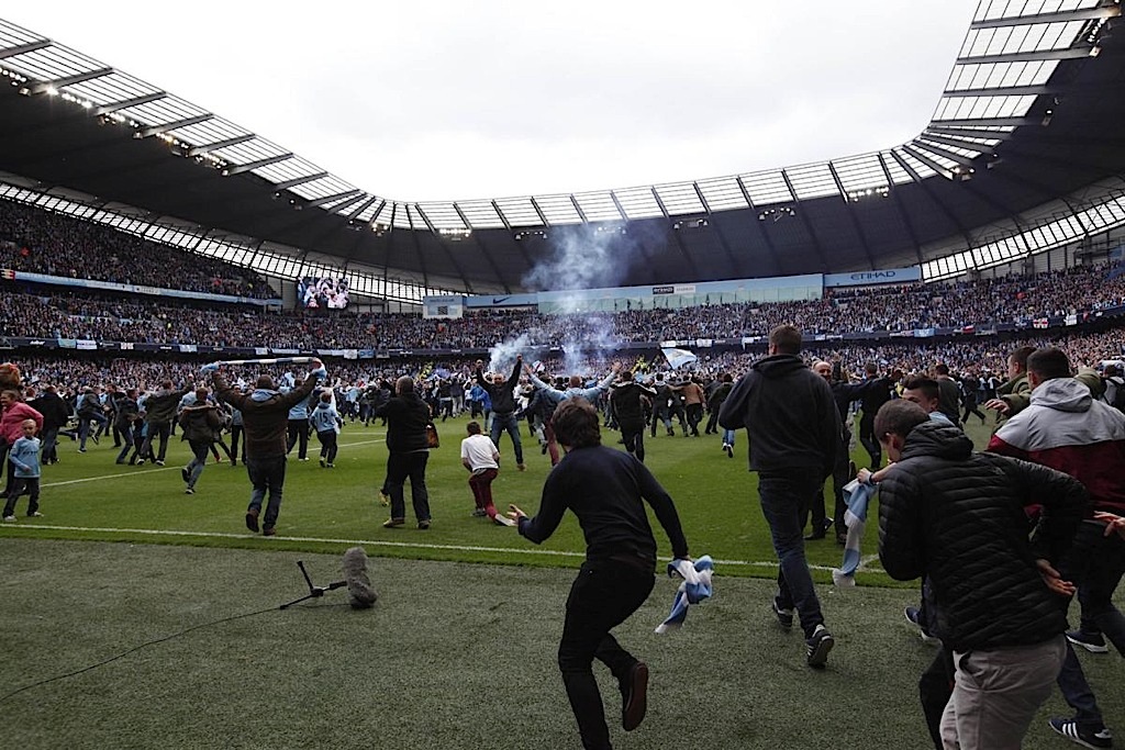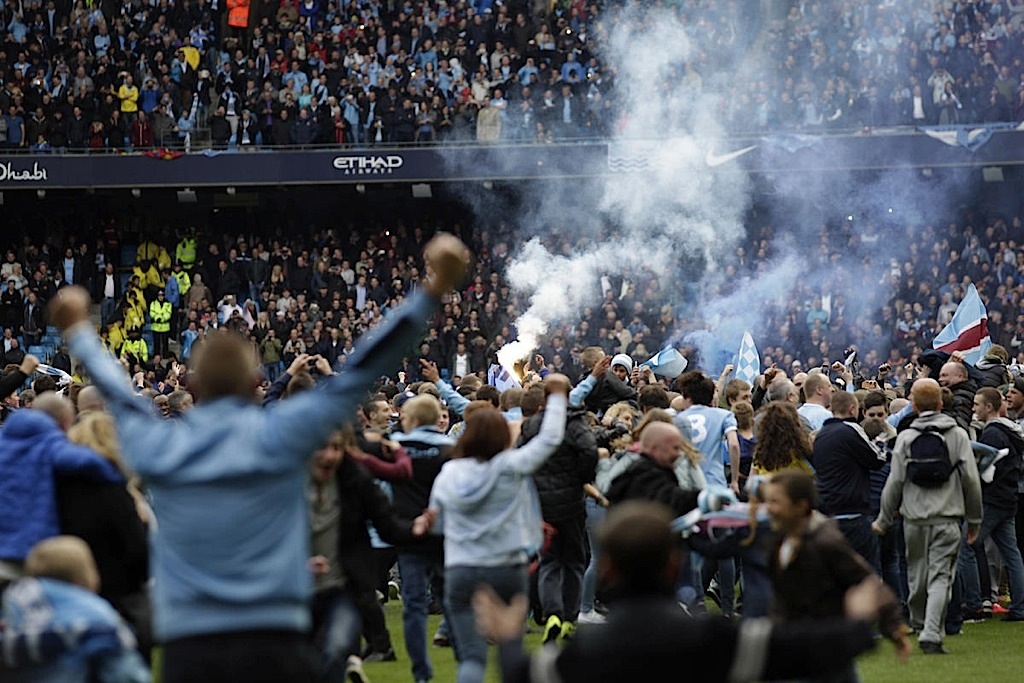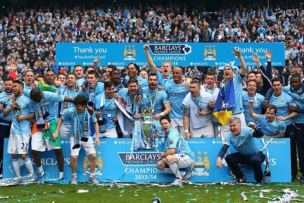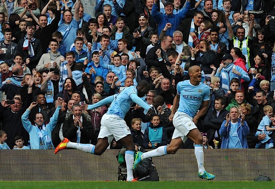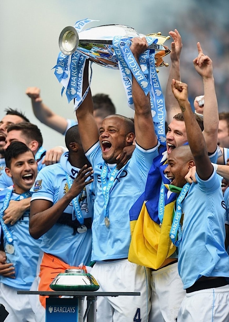لعب مانشستر سيتي بهدوء كبير ليقتنص لقب الدوري الانجليزي الممتاز لكرة القدم لثاني مرة في ثلاث سنوات بعدما هزم ضيفه وست هام يونايتد بثنائية نظيفة   ليحتفل أنصاره بالتتويج ويكتفي ليفربول بالمركز الثاني. ولم يكن سيتي بحاجة لأكثر من التعادل لحسم البطولة لكنه انتصر ليختتم الموسم متفوقا بنقطتين على ليفربول الذي لم ينفعه فوزه 2-1 على ضيفه نيوكاسل يونايتد الذي طرد اثنان من لاعبيه.