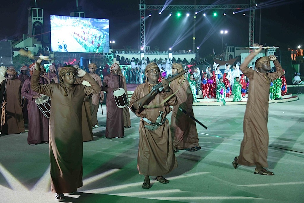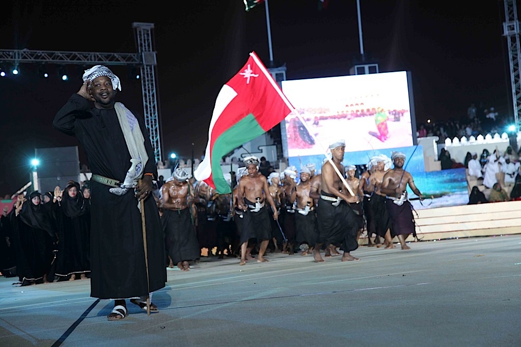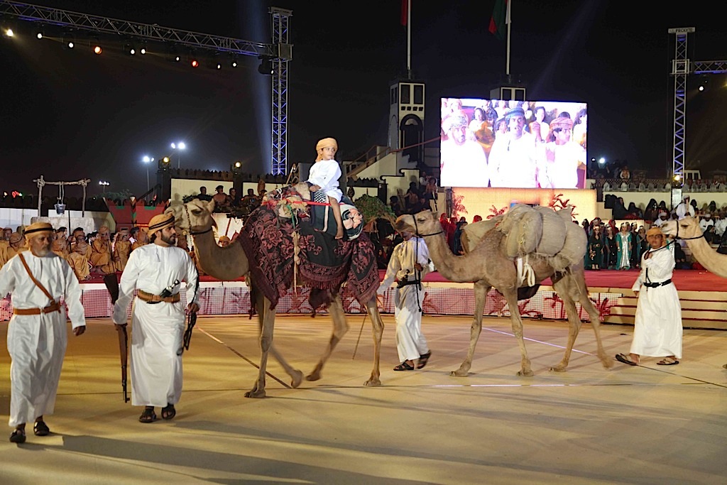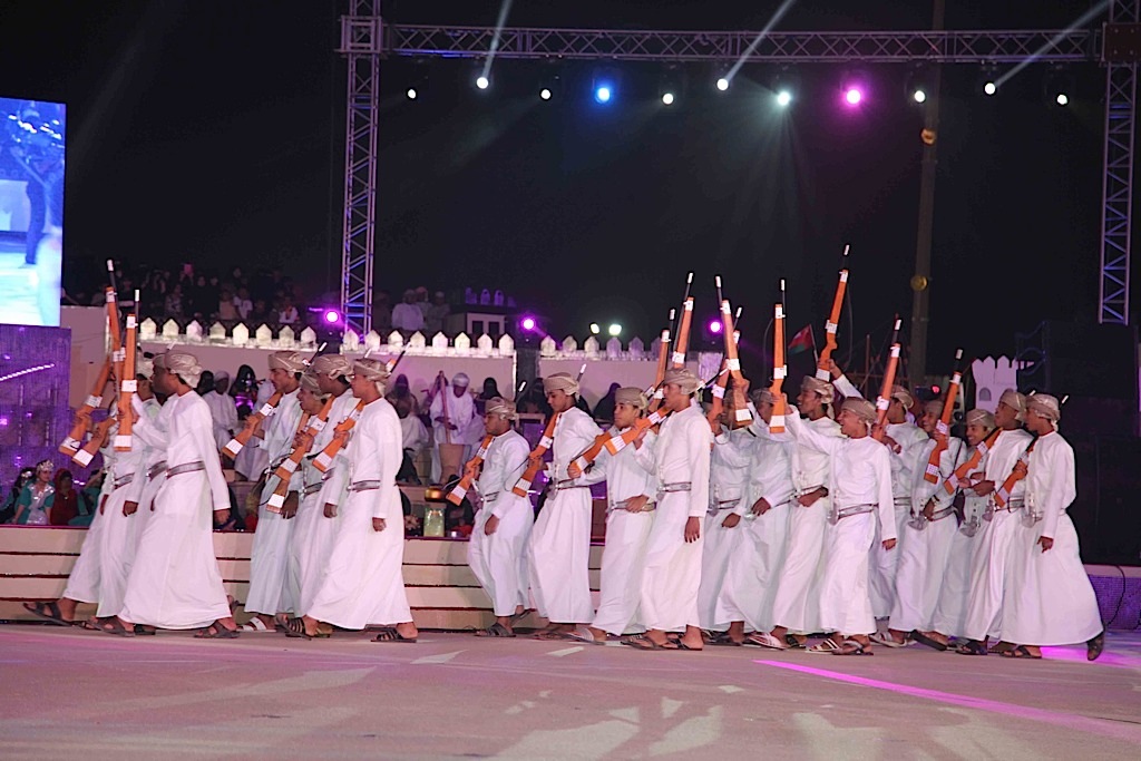 وأتت لوحة «عمان مظلة الأمن والأمان» لتجسد روح التسامح والحب والأمن والأمان الذي تعيشه السلطنة ومن ثم تم عرض لوحة «وحدة وطن» و لوحة «عمان المصير والتاريخ» اما لوحة نشيد «وطن شامخ بسلطانه» فكانت مسك الختام .