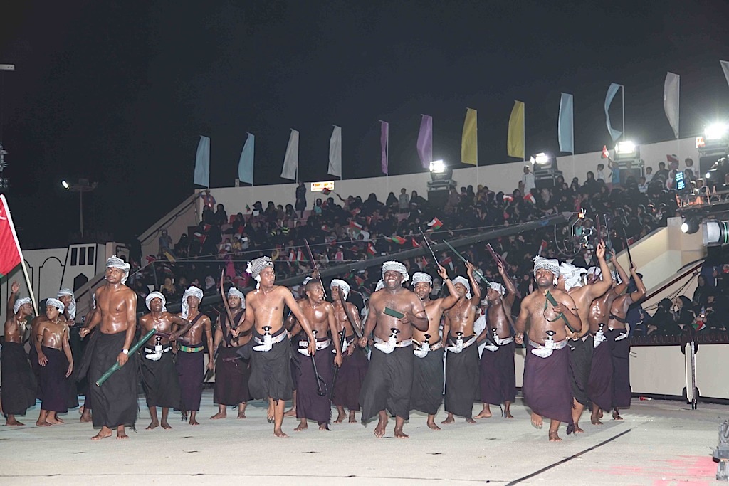 واختتم الحفل بأوبريت فني تضمن عدة لوحات فنية تعكس التراث العماني ،وقد بدأ الاوبريت بلوحة «شروق المجد» التي عبرت عن شروق شمس مجد عمان في تاريخها الحديث تلتها لوحة «أرض الميامين الأباة» التي احتفت بفنون عمان مثل فن الطاروق والسامعين واللولاي والدانادون عاكسة تجليات الشعب العماني وتاريخه عبر العصور. وقد عرضت لوحة «الهمم العالية» الفنون الريفية المغناة في ريف محافظة ظفار والتي تعكس تميز السلطنة بألوانها التقليدية وتنوع ثقافة شعبها.