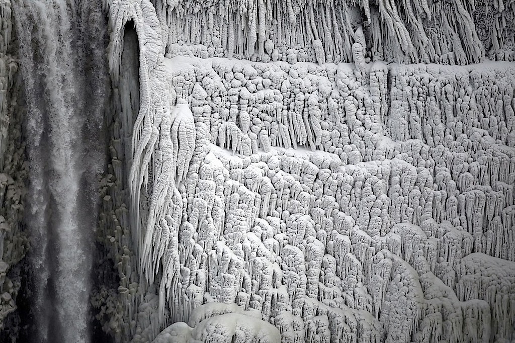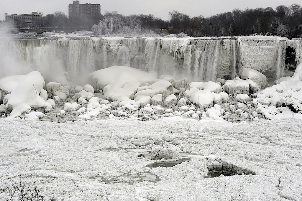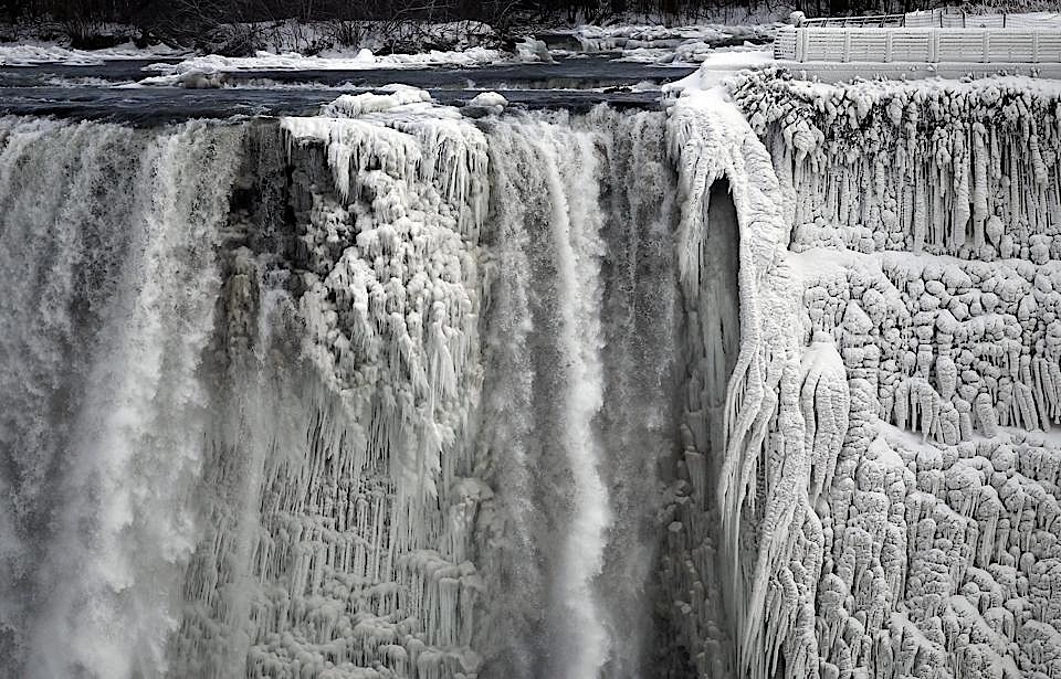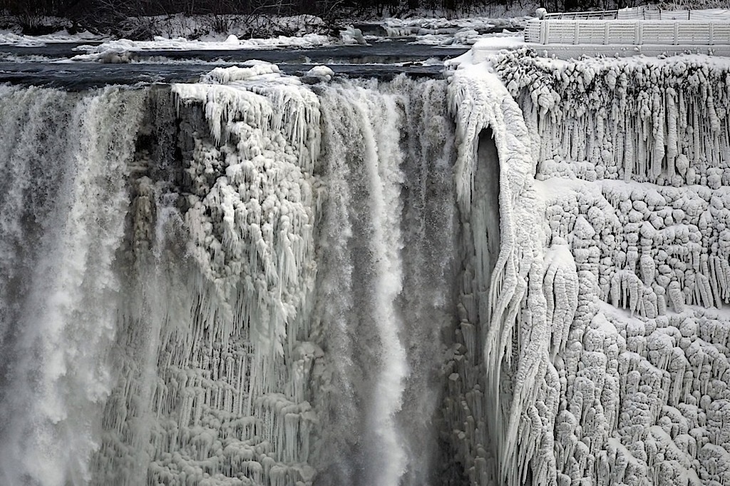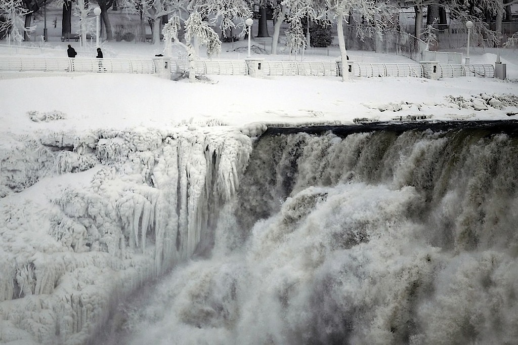وهكذا كان، وبفعل موجات البرد القارس تحولت شلالات نياغارا الى رائعة اخرى متجمدة.