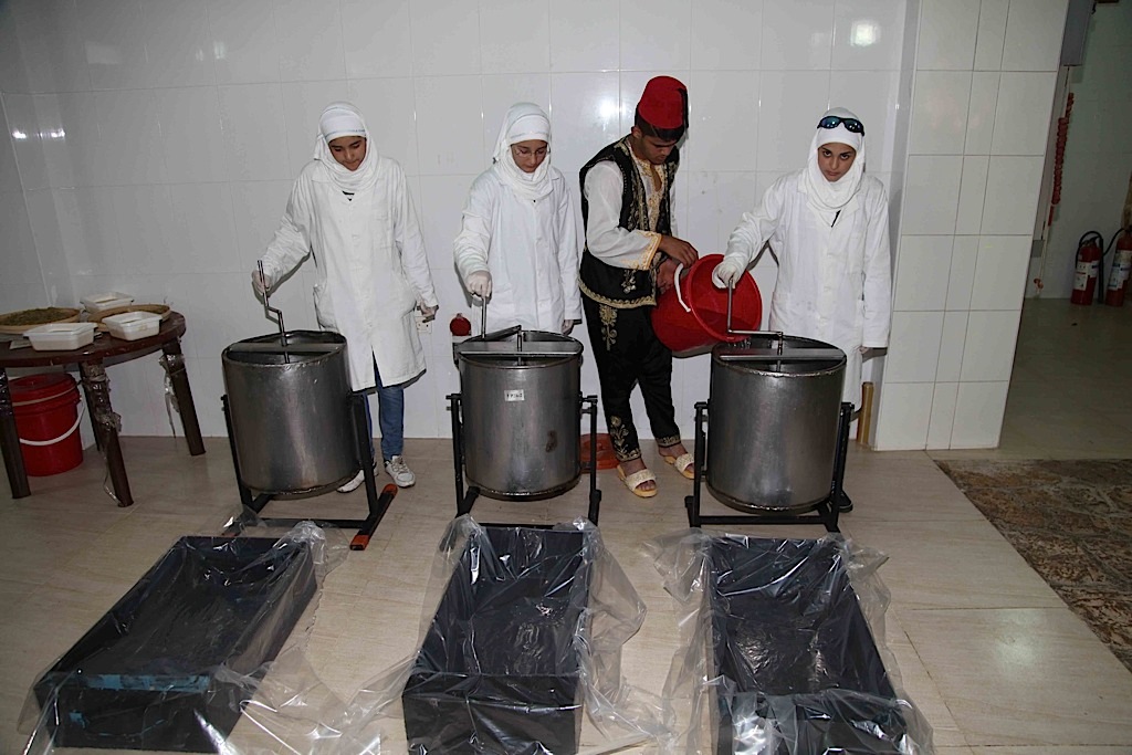 ختاما قدم الدكتور بدر حسون وأبناؤه الصابونة الذهبية الى فرعون، وقدم الدكتور عبدالرزاق إسماعيل لحسون درعا تقديرية باسم اتحاد الشباب العربي وتم توزيع دروع للسفراء والديبلوماسيين والوزراء والنواب وهي عبارة عن دروع مصنوعة من الصابون ومحفورة يدويا.