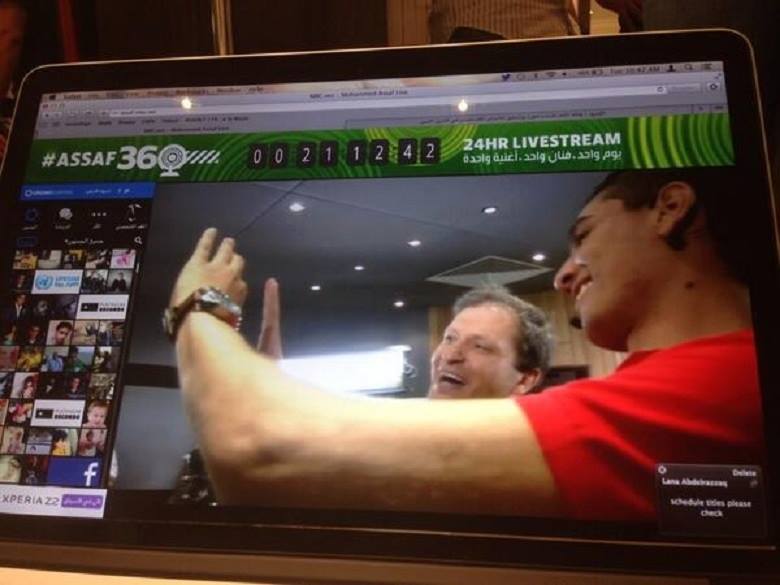 وكان لجمهور عساف ساعة كاملة تحاور خلالها معه، و قال مدير شركة «بلاتينوم ريكوردز» تيمور مرمرشي، في بيان صحافي وزّعته مجموعة «ام بي سي» بالأمس، إن «هذه المبادرة تأتي تنفيذاً لخطتنا الهادفة إلى تطوير تقنيات إنتاج حديثة وتوزيعها، لتُمكِّن العدد الأكبر من الجمهور من المشاركة في إنتاج هذه الأغنية العالمية، التي كنّا بدأنا التحضير لها قبل أكثر من 3 أشهر».