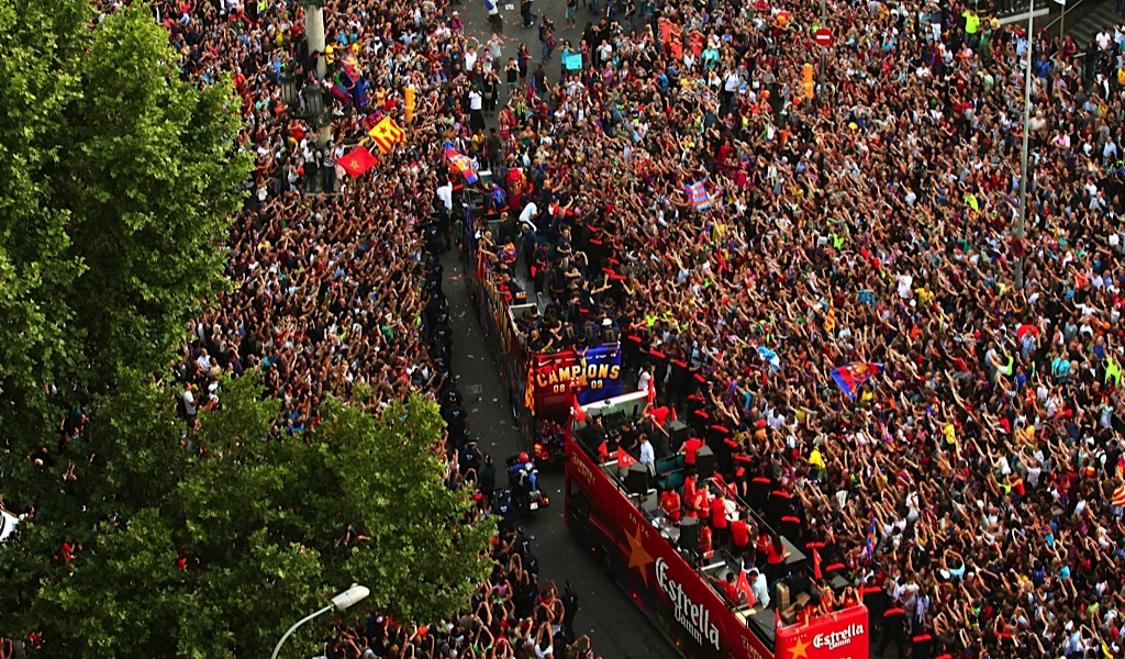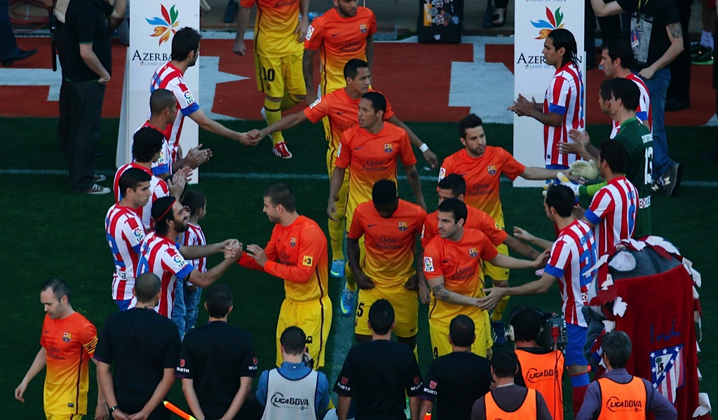 ووقف لاعبو اتليتيكو مدريد على هيئة حرس الشرف احتفاء بلاعبي برشلونة بعد ضمان فوزهم باللقب. وحقق اتليتيكو مدريد هدفه ايضا وهو ضمان التأهل التلقائي الى دوري ابطال اوروبا الموسم المقبل.