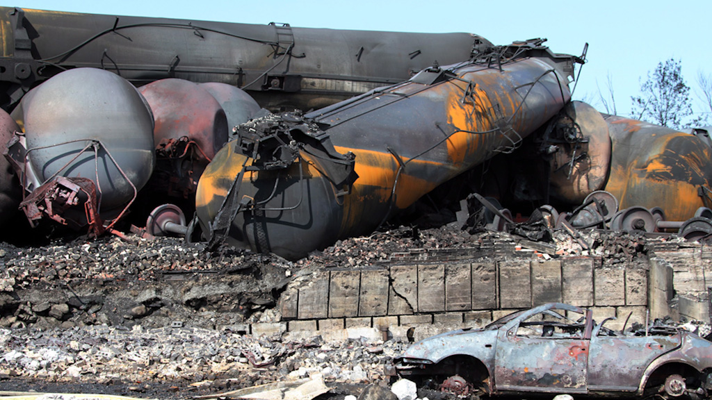 ونقلت شبكة “سي بي سي” الكندية بأن النار كانت مشتعلة لساعات في القطار قبل الحادث، الذي أودى بحياة 15 شخصاً فيما لا يزال نحو 35 في عداد المفقودين، رجح خبراء بأنه ربما “تبخروا” في  الهواء بفعل قوة الانفجار الهائلة وما تبعه من حريق ظل مشتعلا لمدة 36 ساعة. ووصف رئيس الوزراء الكندي، ستيفن هاربر، المشهد كانه “منطقة حرب.” وكانت صهاريج قطار الشحن، وعددها 72، تنقل شحنة من النفط، تبلغ سعة كل منها 700 برميل.