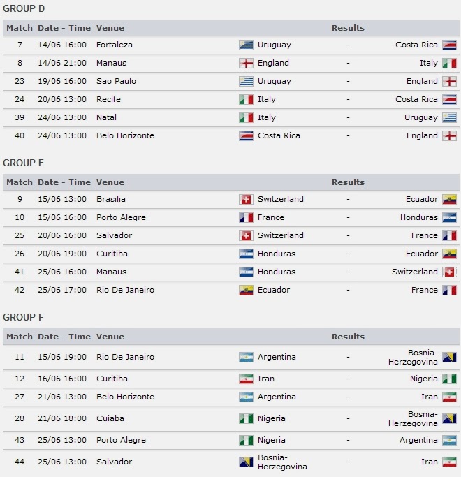 1-7 / 16.00 / أول المجموعة السادسة – ثاني المجموعة السابعة / ساو باولو (المباراة 55)