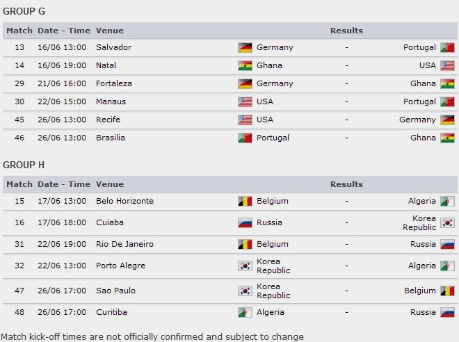 26-6 / 20.00 / كوريا الجنوبية – بلجيكا / ساو باولو