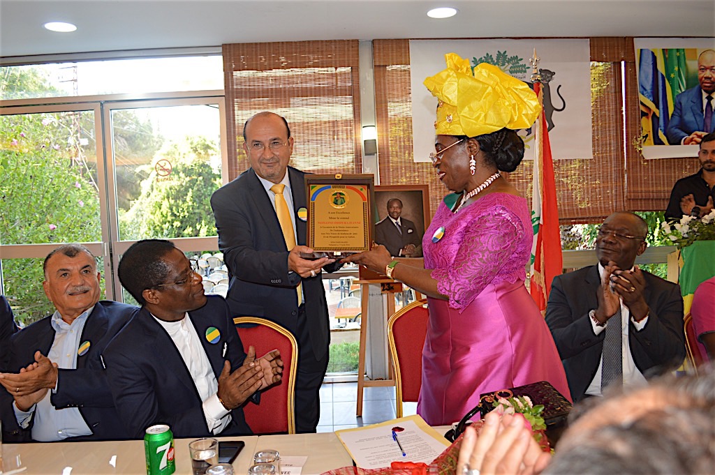 بعدها قدمت اللجنة درعا تقديرية لقنصل الغابون. واقيم حفل كوكتيل.