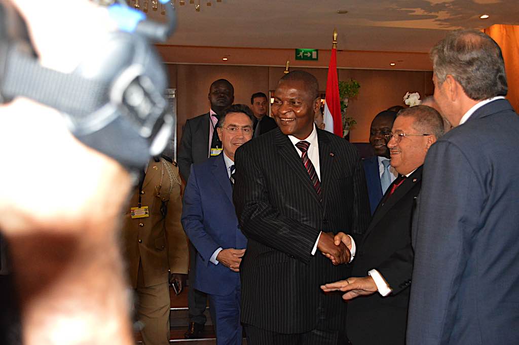 ثم قال رئيس جمهورية افريقيا الوسطى: “أود أولا باسم الوفد وباسمي ان اتوجه اليكم بالشكر بكل محبة واخلاص لهذا الاستقبال، انه استقبال ودي وحار واخوي، وكذلك للمباحثات التي اجريناها. وخلال الخلوة التي عقدناها عرضنا اهداف زيارتنا، وكما تعلمون لقد أتينا الى لبنان لكي نشارككم خبراتكم، ونعرف في ماض حديث واجه لبنان اوقاتا صعبة، لكنه تمكن من استعادة عافيته، ونحن في حاجة الى هذه الخبرة لاننا نعبر اوقاتا صعبة، وشعبنا ايضا يود ان يخرج من هذه الازمة ونرغب عبر هذه المحادثات ان نتعلم منكم كثيرا للخروج من ازمتنا. ونعرف ان لبنان يتمتع بقدرات كبيرة، خصوصا في مجال الاستثمارات والشركاء في لبنان التي يمكنها مساعدتنا لان هناك مشكلة في عدم النمو والتطور، ونود ان نتعاون مع قطاع ديناميكي، ونعمل حاليا لتحسين مناخ السفارة والاعمال لكي نجلب مستثمرين وشركاء يرغبون في الاستثمار في افريقيا الوسطى لديهم امكانات في هذا المجال. ولدينا في افريقيا الوسطى عاملون ومستثمرون لبنانيون يساهمون في انماء واحياء الاقتصاد، ونرغب في توسيع هذه الامكانات لان بلدنا يقدم امكانات كثيرة في مجالات عديدة، لذلك نحن مهتمون لانكم تعهدتم بدعم هذا التوجه والابقاء على التواصل الدائم بقيادتكم ايضا على مستوى الشراكة وعلى مستوى المصارف ومستثمرين آخرين”.