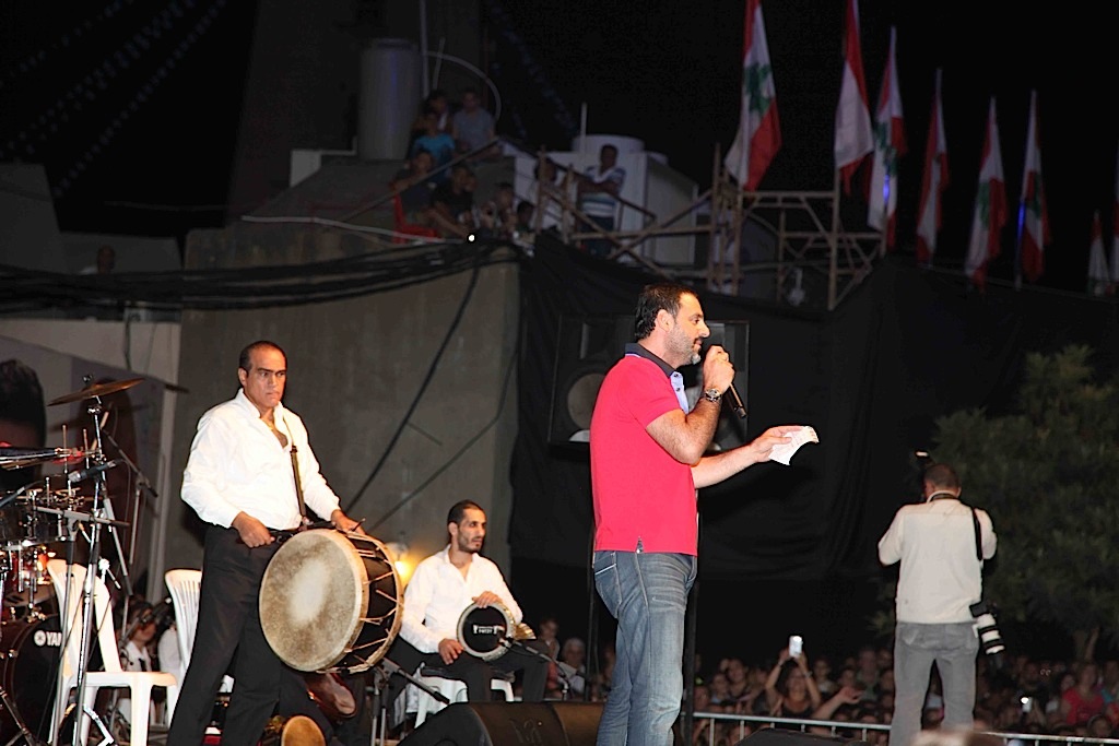 قدم الفنان فارس كرم مجموعة من أغانيه الرائجة بين الشباب خلال حفل مهرجان الحدث بمناسبة «عيد السيدة 2013» والذي استقطب جمهورا واسعا من كافة المناطق اللبنانية. وعلى مدى ساعة ونصف أدى كرم أجمل أغنياته ، على إيقاعات قوية وخصوصاً “الطبل” الذي زاد الأجواء حماساً على حماس ، فغنى “لمشيلك حافي” ، “مواويل” ، “ميجانا” ، “عم تتطلع بالنسوان” ، “الدني حلوة برجالا” ، “متر وسبعين”، “لركب حدك يا موتور” ، “التنورة” ، “تنبك معسّل” و”الغربة” وغيرها الكثير من الاغاني وسط تفاعل كبير من الحشود. وغلبت الحماسة على عدد من معجبي كرم الذين اعتلوا المسرح لحصول على صورة تذكارية فما كان منه الا ان استجاب لطلبهم بأبتسامة عريضة.