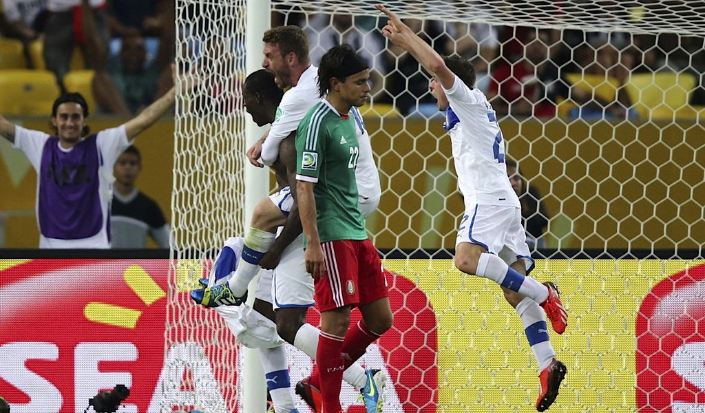 احتفل اندريا بيرلو بمباراته المئة على المستوى الدولي بتسجيل هدف رائع من ركلة حرة لتفوز إيطاليا 2-1 على المكسيك. وسجل ماريو بالوتيلي هدف الفوز لإيطاليا في الدقيقة 78 بعدما افتتح بيرلو التسجيل بتسديدته الساحرة قبل أن يتعادل خافيير هرنانديز للمكسيك من ركلة جزاء في الشوط الأول.