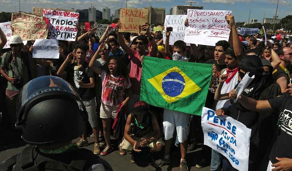 وتم اطلاق صيحات استهجان ضد رئيسة البرازيل ديلما روسيف ورئيس الاتحاد الدولي لكرة القدم (الفيفا) سيب بلاتر قبل المباراة في استاد ماني جارينشا الوطني في برازيليا لتظهر الجماهير عدم رضاها.