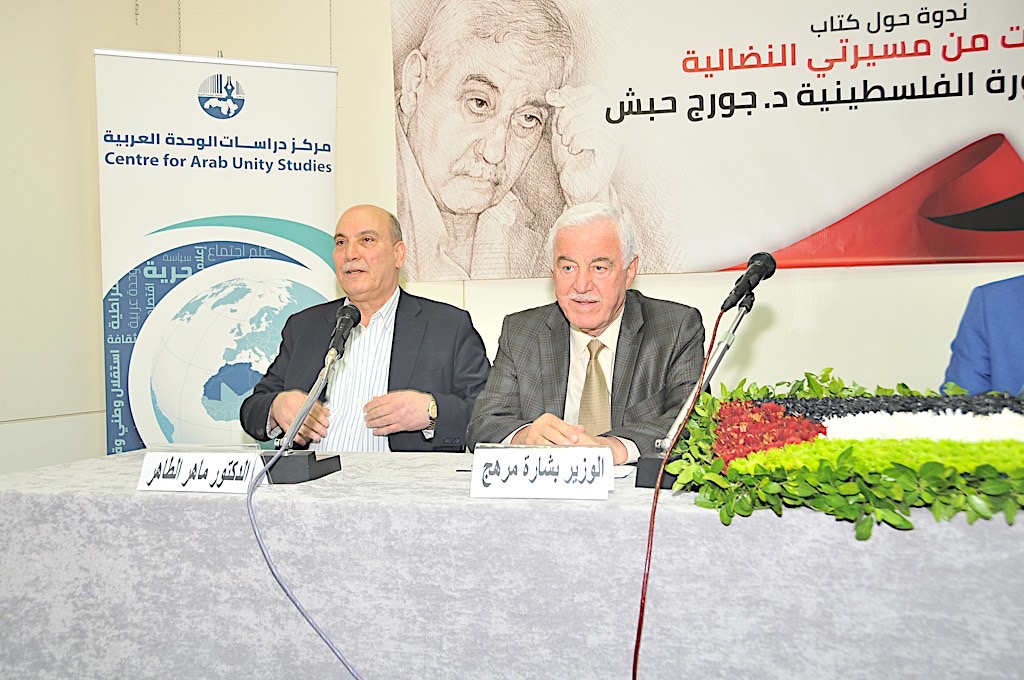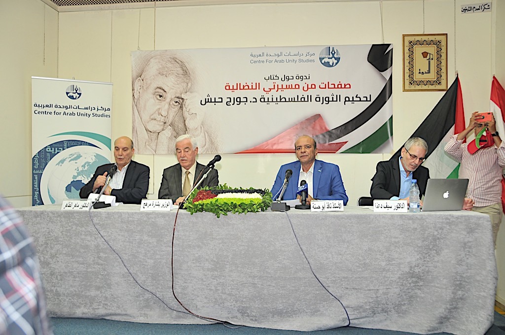 أقيم يوم الأحد بدعوة من مركز دراسات الوحدة العربية ندوة حول كتاب «صفحات من مسيرتي النضالية ــ مذكرات جورج حبش» في «دار الندوة» تحدث خلالها الوزير السابق الوزير السابق بشارة مرهج، والقيادي في الجبهة الشعبية ماهر الطاهر، والكاتب والأكاديمي الزميل سيف. الكتاب الذي صدر مؤخراً عن المركز فجر خلافاً بين زوجة حبش وبين المركز.