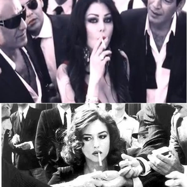 وتناول النشطاء أيضا الاسنتساخ الحاصل في الملصق الدعائي للفيلم ومدى تشابهه مع فيلم ”Malèna” للنجمة الإيطالية مونيكا بيلوتشي بالاضافة الى برومو الفيلم الذي تم نسخه من إعلان فيلم مونيكا بيلوتشي’، حيث تمشي في شوارع مختلفة ليتفحصها الناس بأعينهم، وفي النهاية يجتمعون حولها ليشعلون لها سيجارة’، ولكن ترفضهم جميعاً وتوافق على قيام طفل بإشعالها.