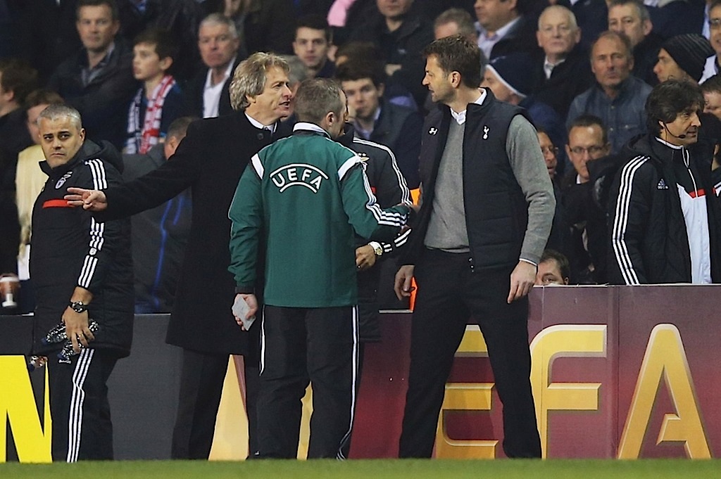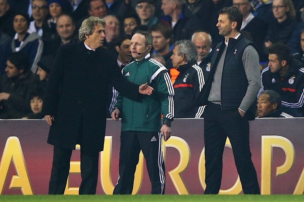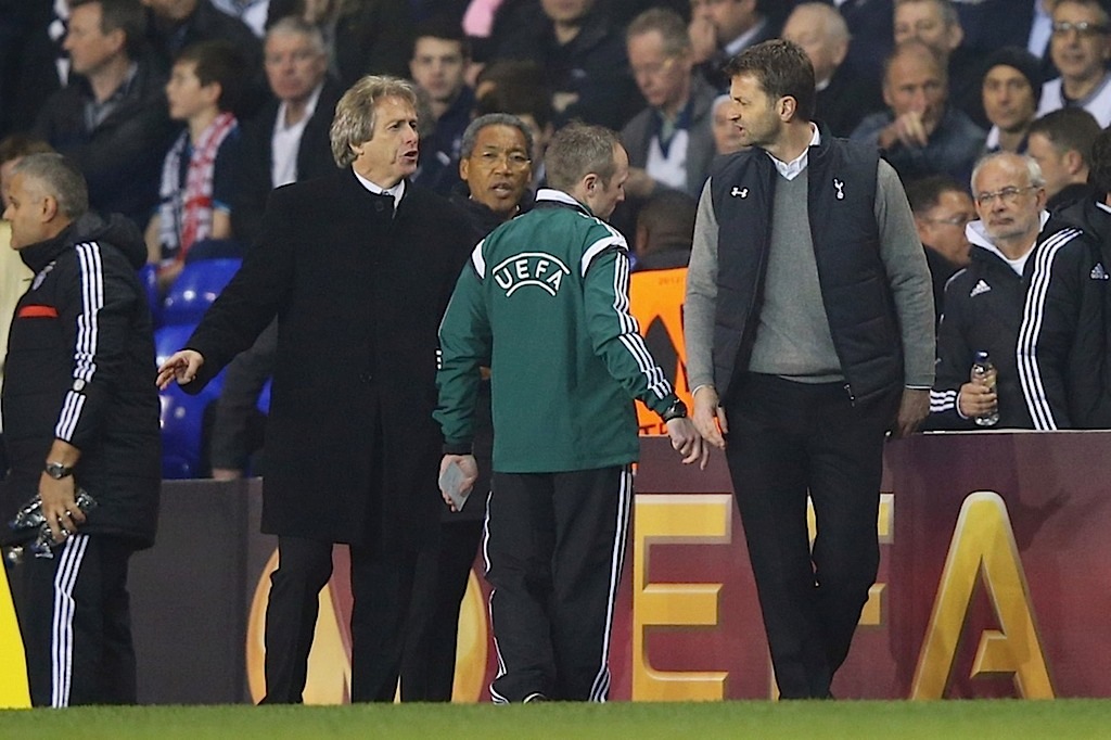 وقد حفلت مباراة بنفيكا وتوتنهام بالمشاحنات بين مدربي الفريقين ما جعل ما يحدث خارج الملعب اكثر إثارة مما يحدث داخله.