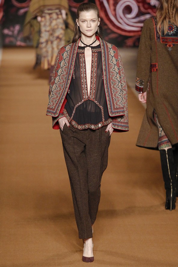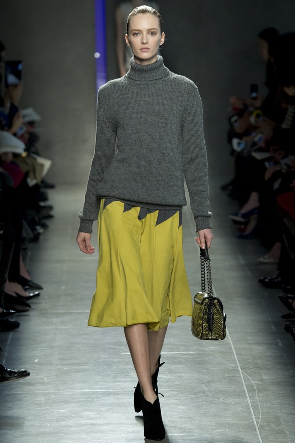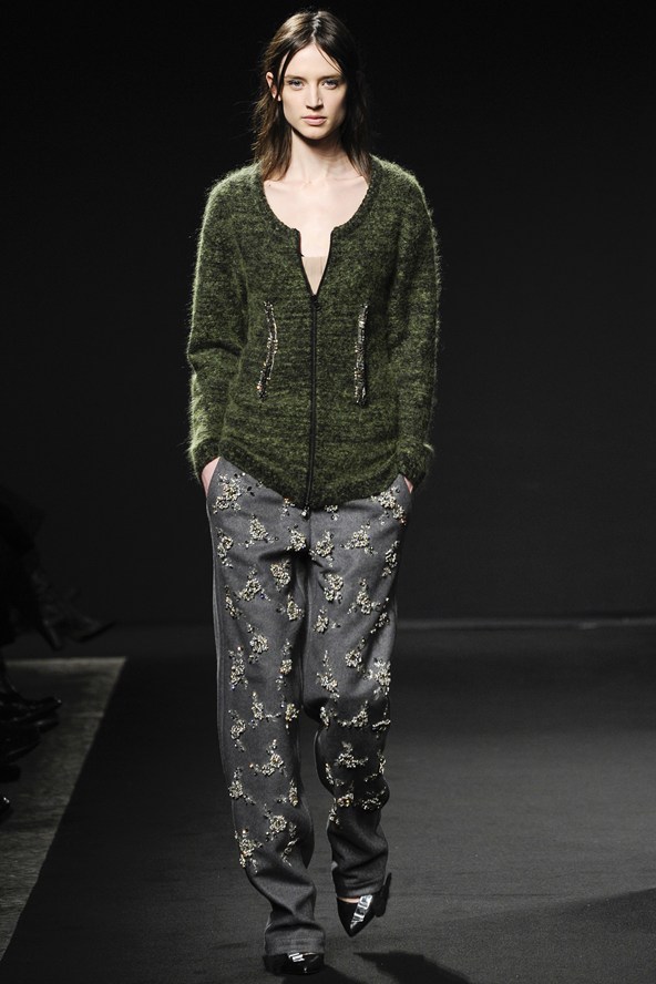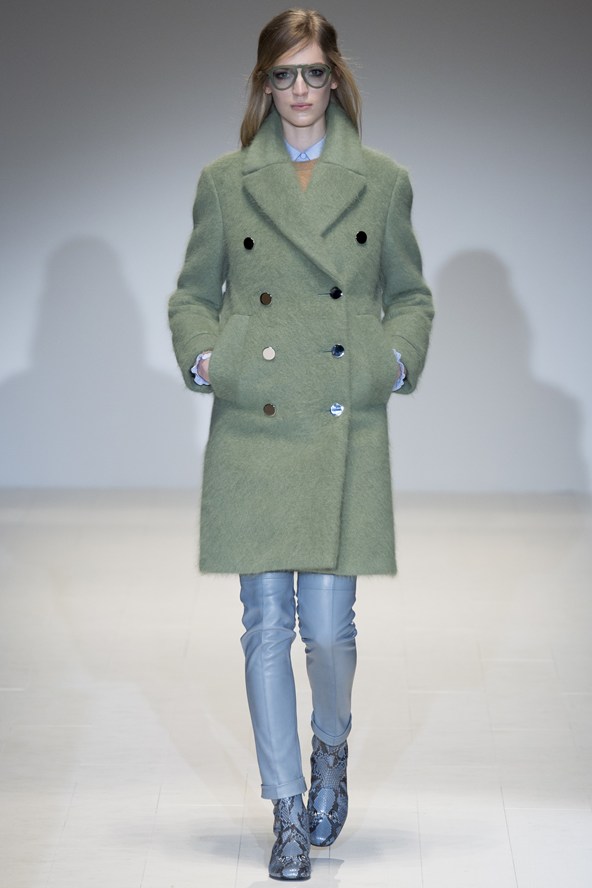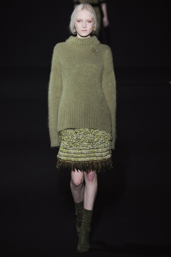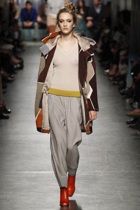 من جهته مزج جورجيو ارماني أقمشة لينة باللون الرمادي مع الأخضر لنظرة شبابية في مجموعة الخريف والشتاء .و عرض ارماني سراويل واسعة باللون الرمادي تصل إلى منتصف الساق أو إلى الكاحل وسراويل أخرى ضيقة بلمحة من اللون الأخضر وسراويل قصيرة سوداء واسعة تشبه التنورات. وارتدت العارضات سترات واسعة بنقوش تشبه جلود الزواحف يصل طولها إلى الخصر مع سراويل قصيرة واسعة وأحذية ذات رقاب طويلة.