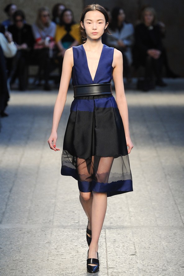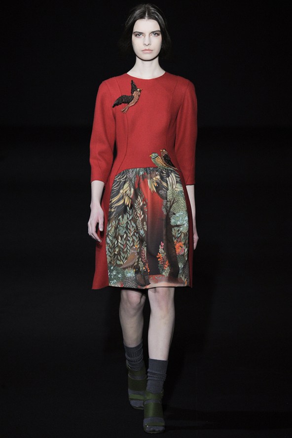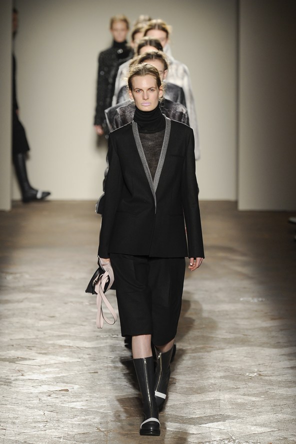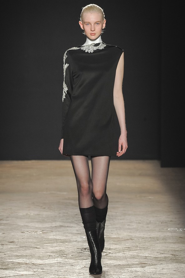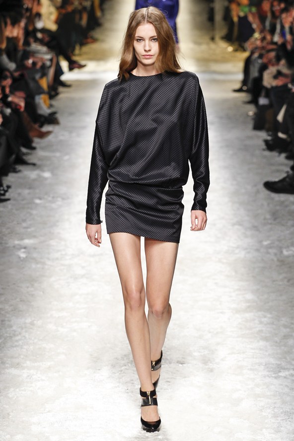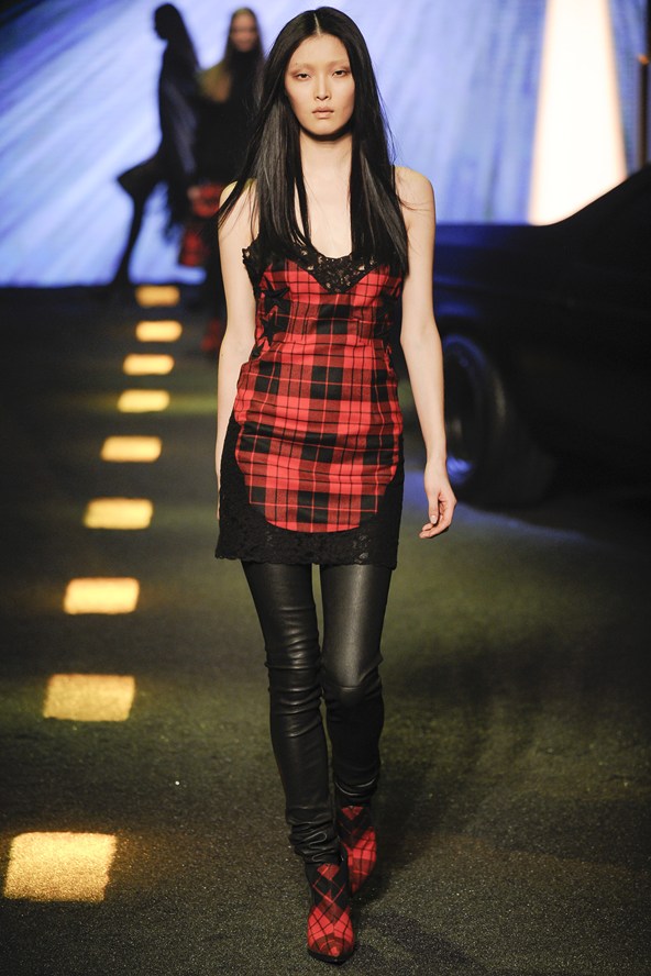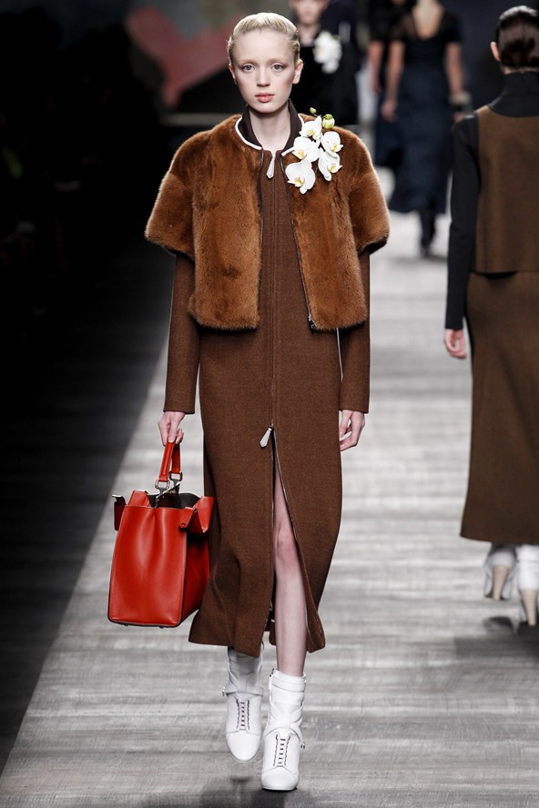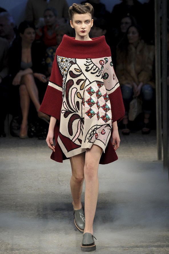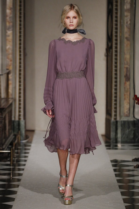 دوناتيلا فيرساتشي عادت بلمسة من عشرينيات القرن الماضي مع الفساتين القصيرة المزينة بالأحجار والدانتيل. أما المعاطف فظهرت بالفرو القصير ويغلب عليها اللون الأحمر الأرجواني. مع تدرج واضح للأزرق والأسود.